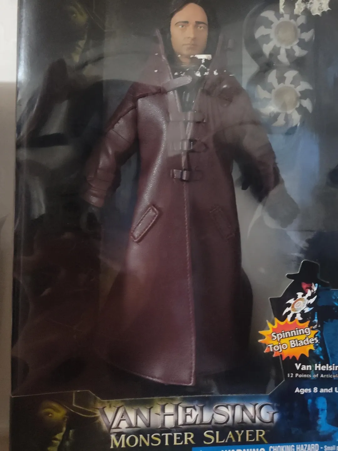 Selling a Van Helsing Monster Slayer action figure. It features spinning Tojo blades and 12 points of articulation. Recommended for ages 8 and up