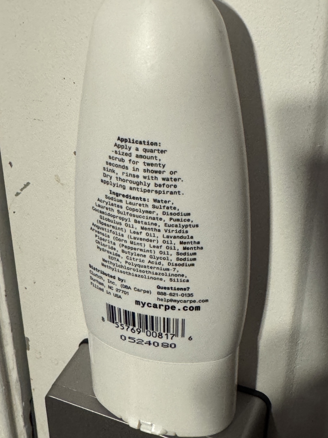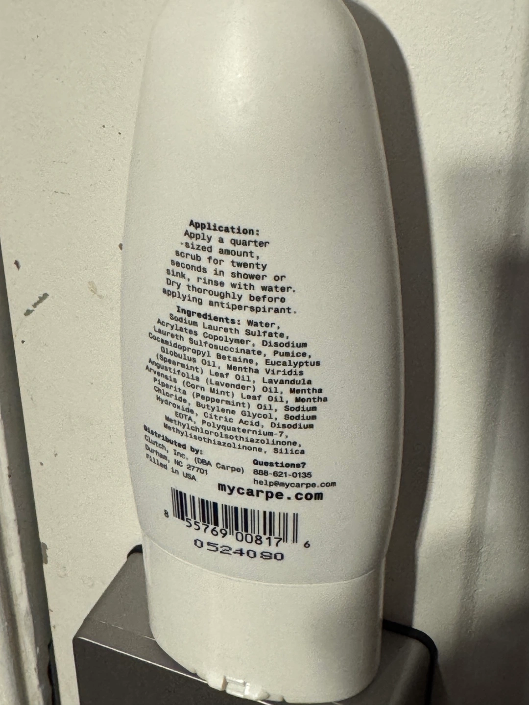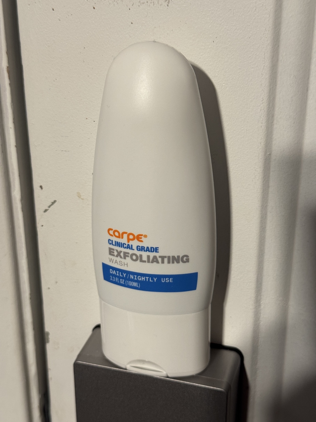 Selling a Carpe Clinical Grade Exfoliating Wash. This is for daily or nightly use and comes in a 3.3 fl oz (100ml) bottle. It's designed to be used in the shower or sink, followed by rinsing thoroughly.