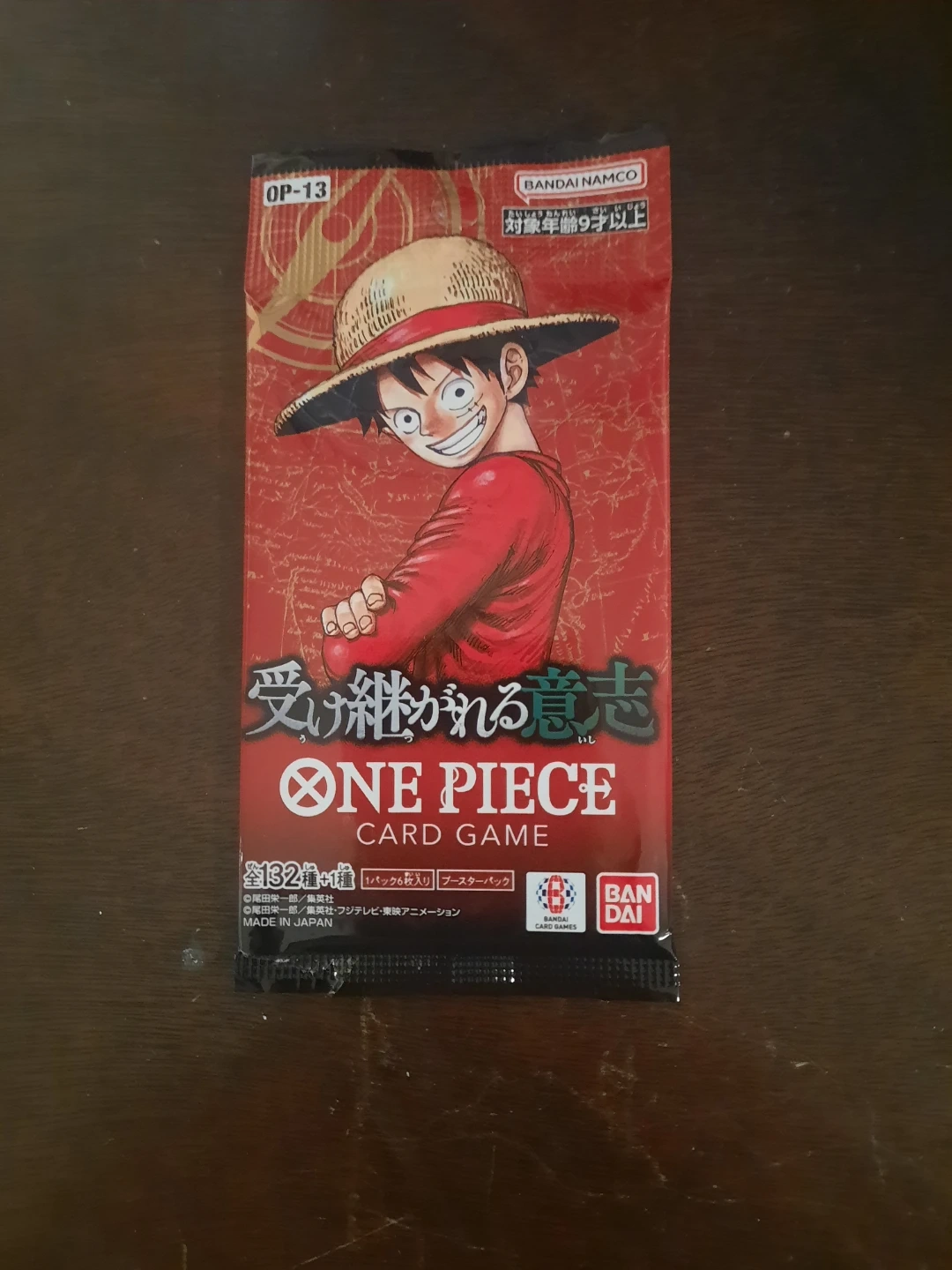 Selling a pack of the One Piece Card Game, specifically the OP-13 set. It looks like it's a booster pack, perfect for adding to your collection or getting started with the game!