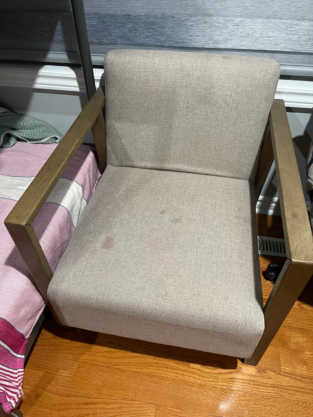 Selling these chairs used good condition only washable stains on them perfect for living room .. bought for $240 for two chairs but selling only $108 for both.