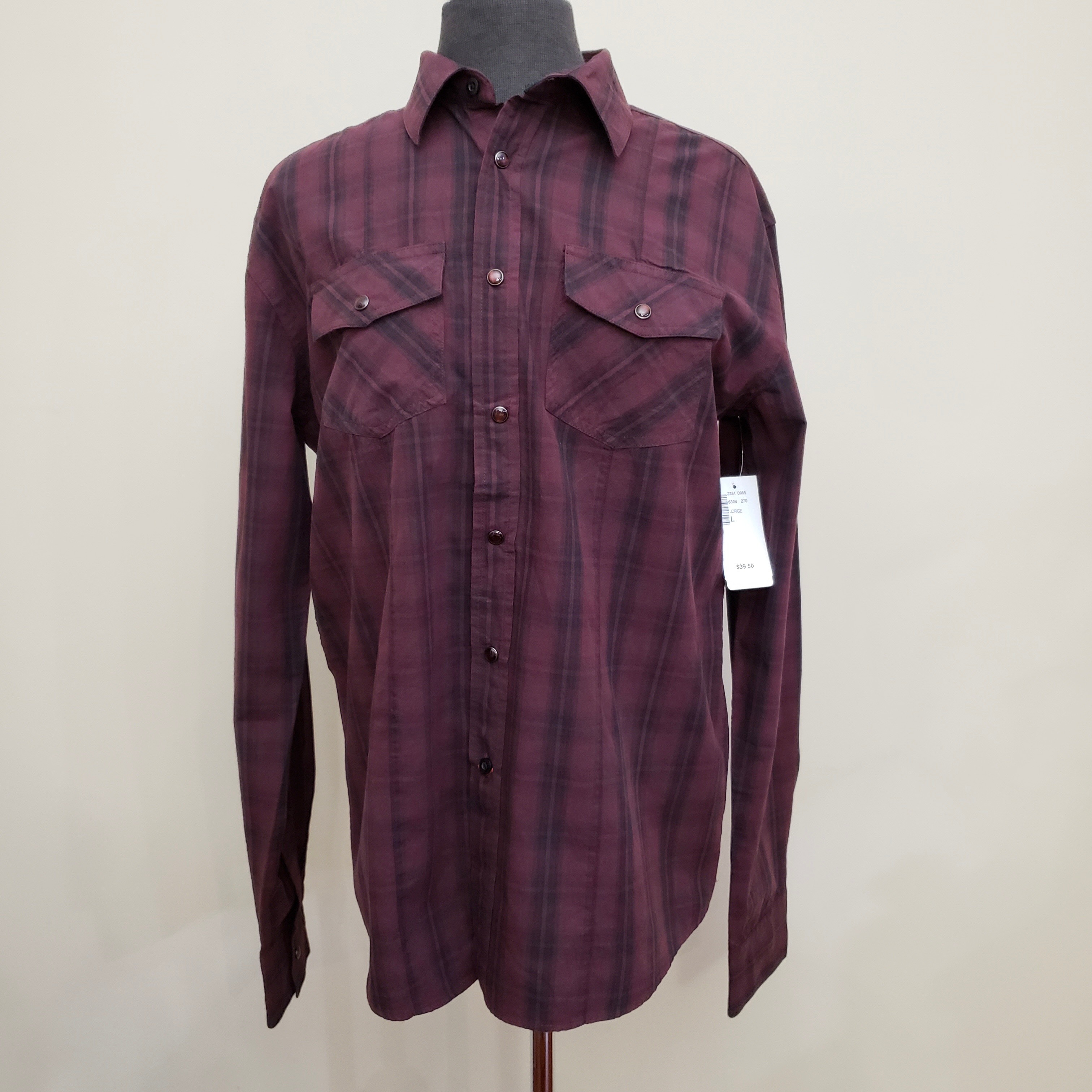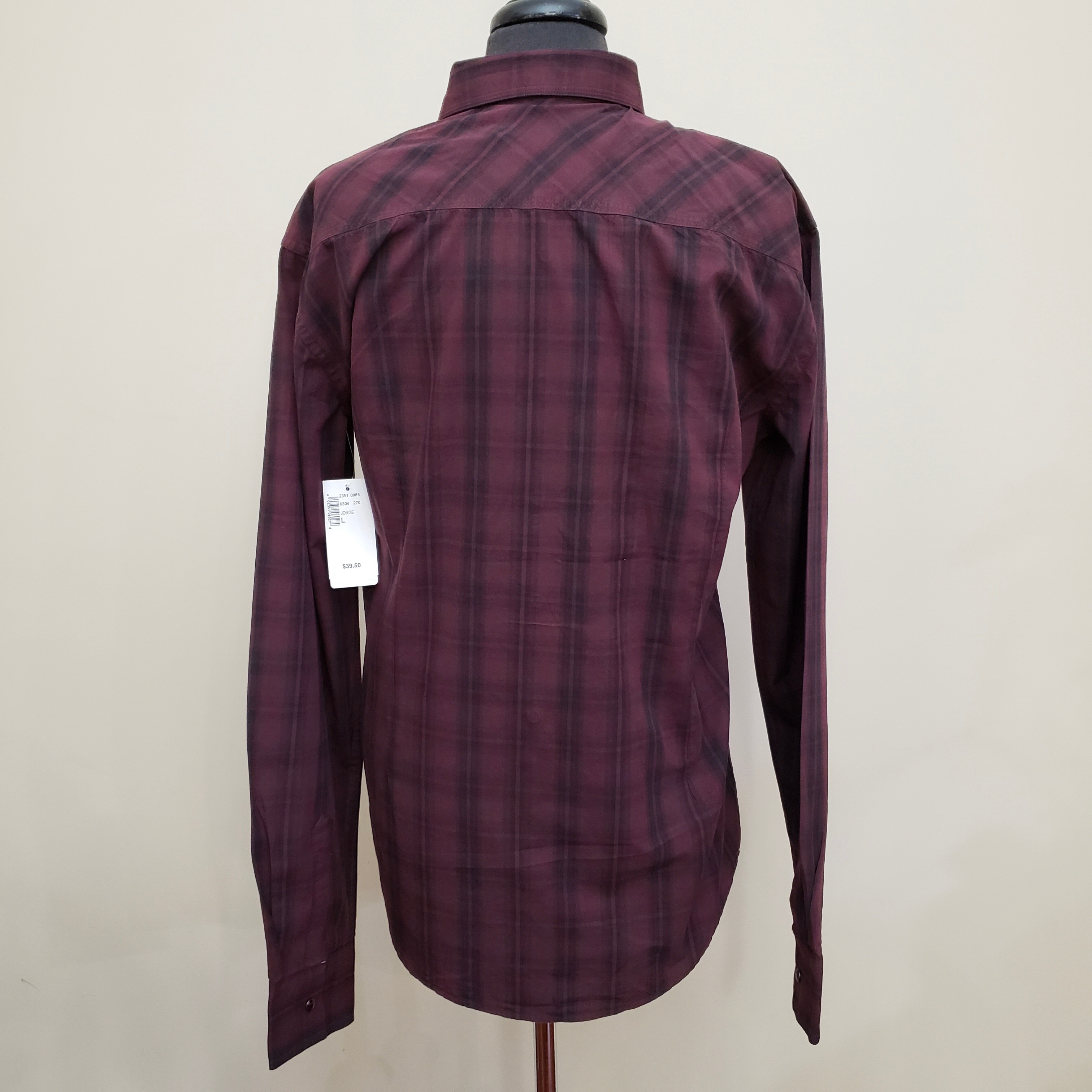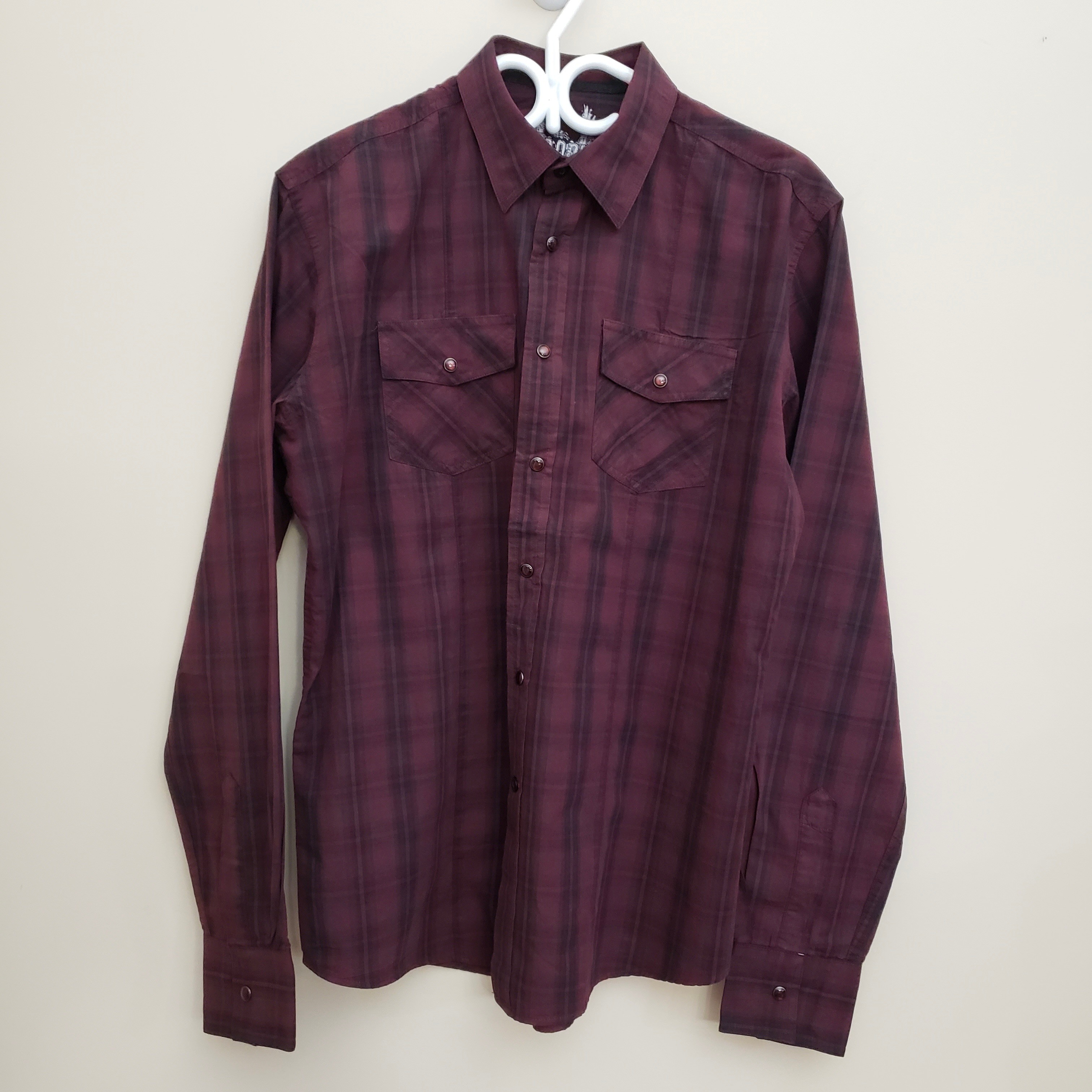 New Burgundy Plaid Brody Men’s Long Sleeve Shirt Slim Fit Large – Only $9 each