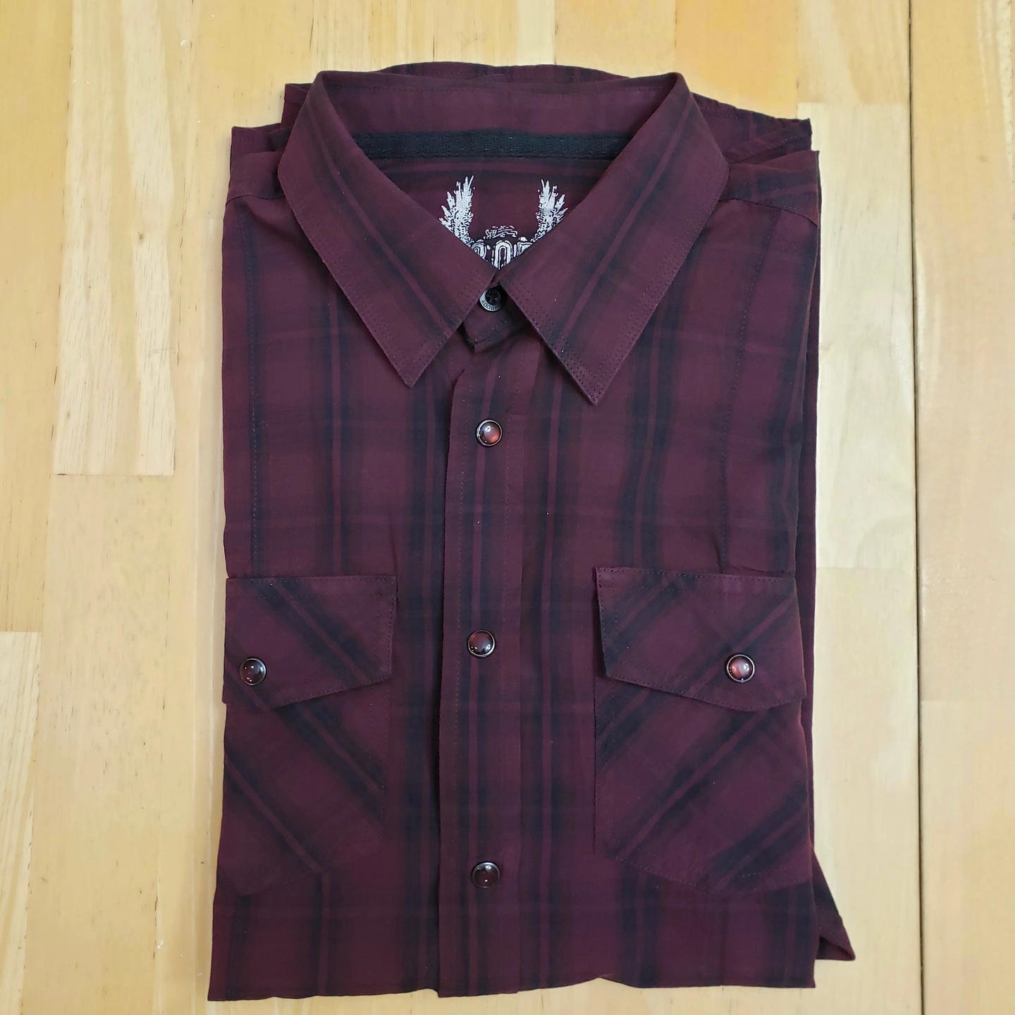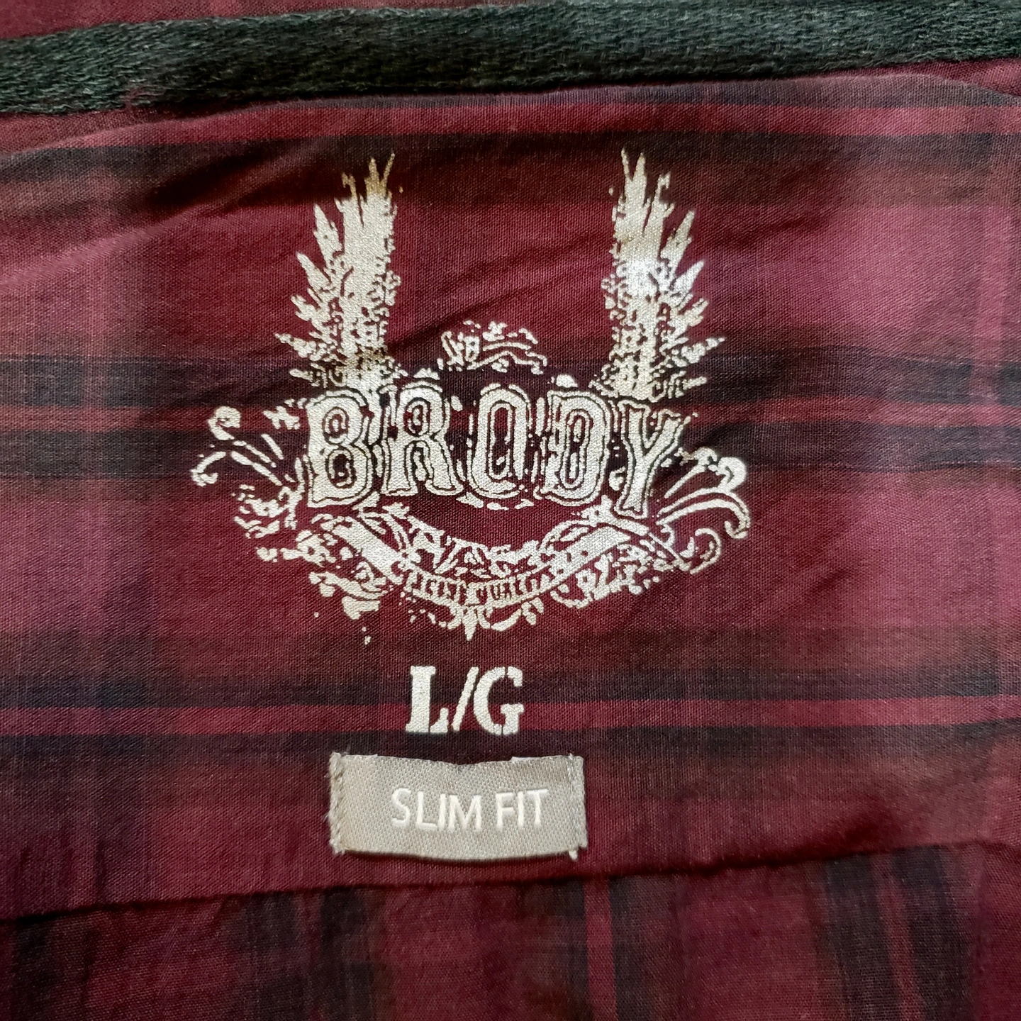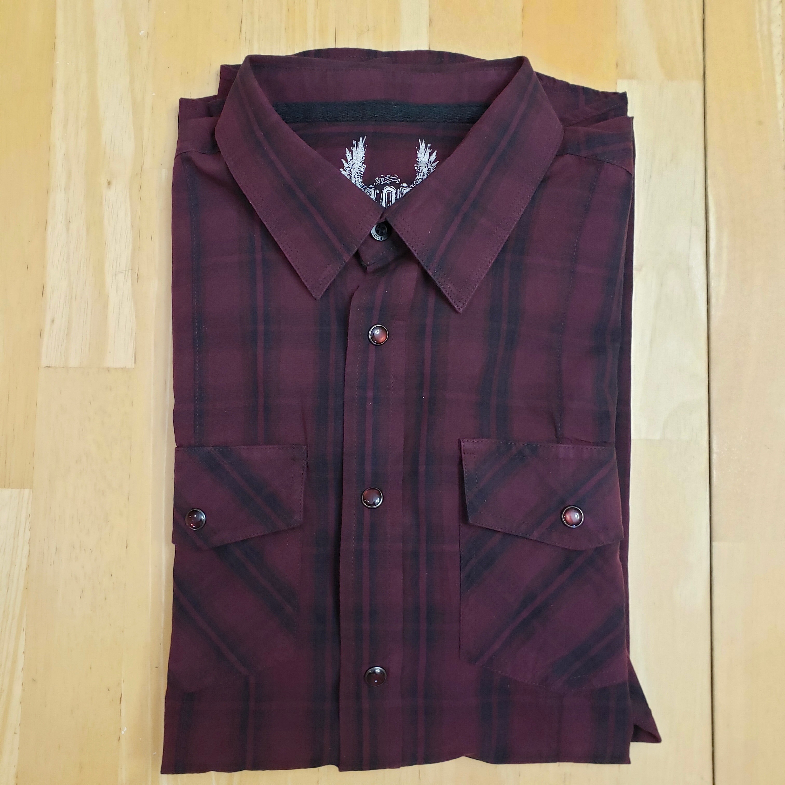 New Burgundy Plaid Brody Men’s Long Sleeve Shirt Slim Fit Large – Only $9 each