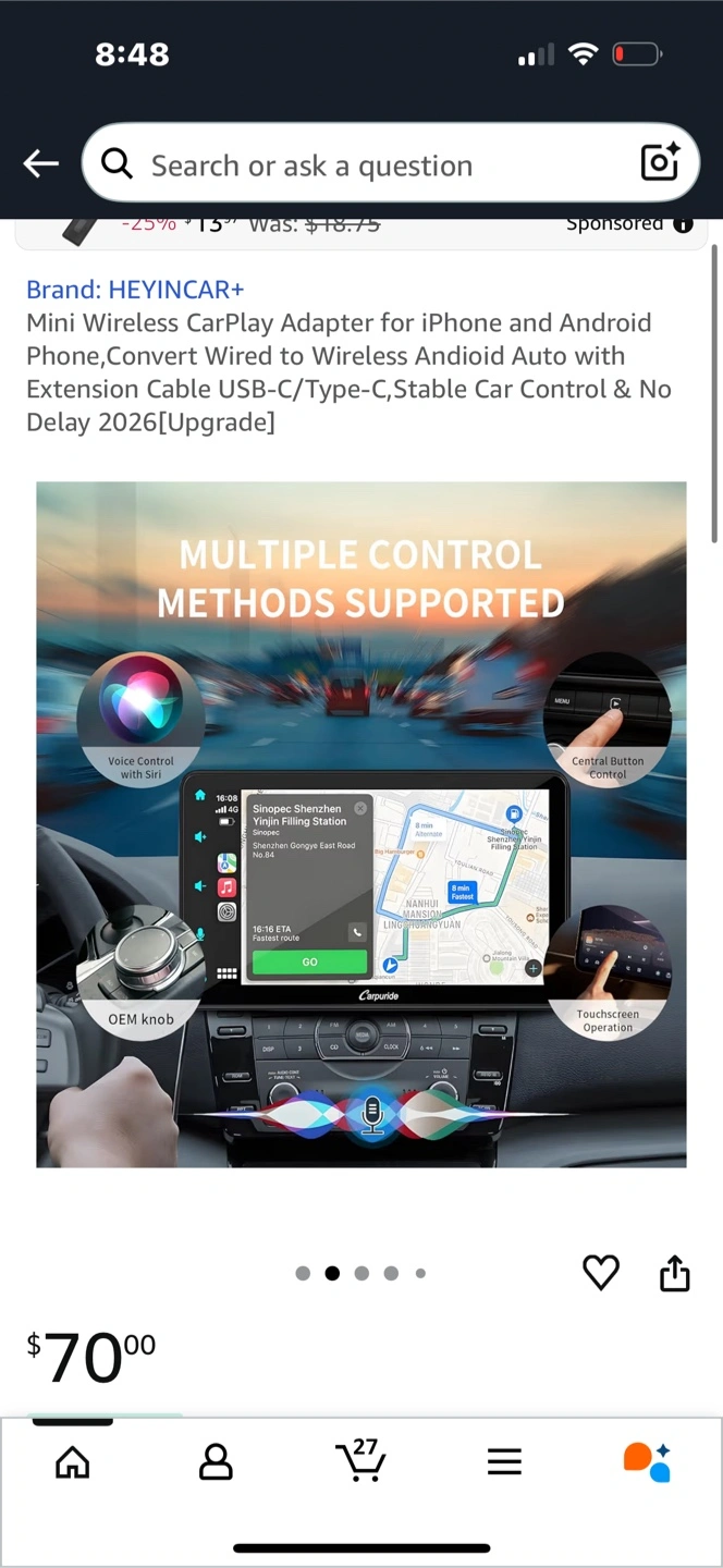 Selling a HEYINCAR+ Mini Wireless CarPlay Adapter for iPhone and Android phones. It converts wired to wireless Android Auto with an extension cable. It supports stable car control and has no delay. Originally bought for $70.
