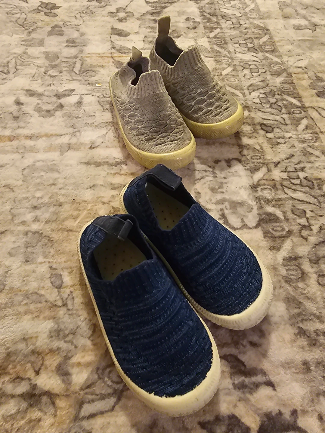Selling two pair of Jan & Jul kids' shoes in blue size 7 and grey size 22. They're in good condition and perfect for your little one to run around in! There is a pair in grey and a pair in blue. We'll loved best purchase for the little one to run arround comfortably 20 each or 30 for both