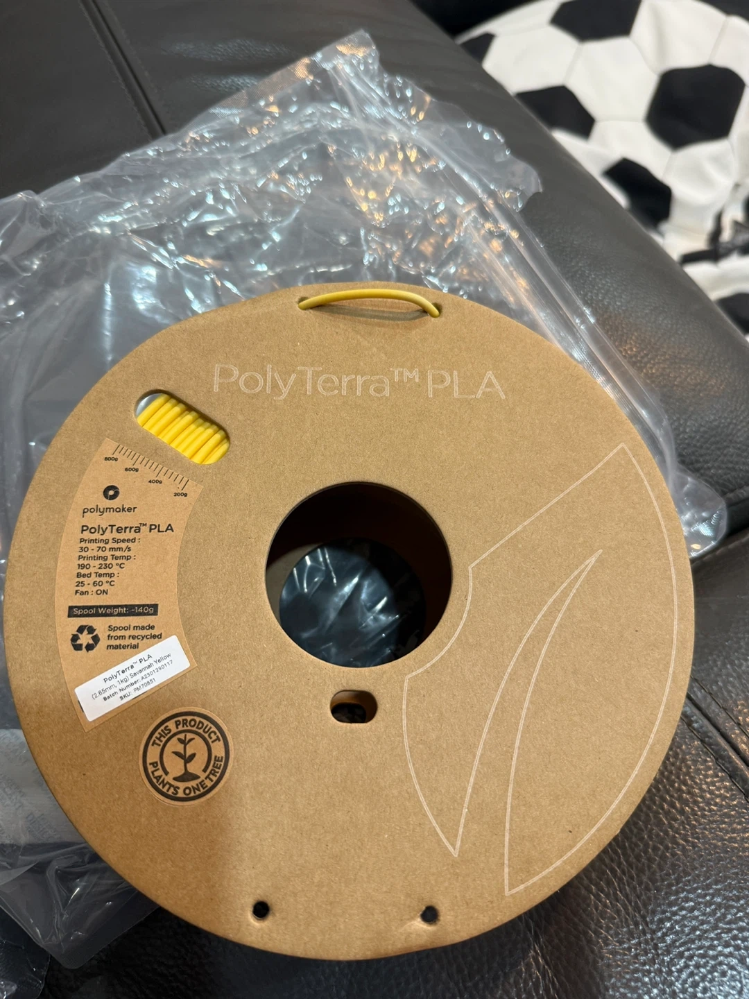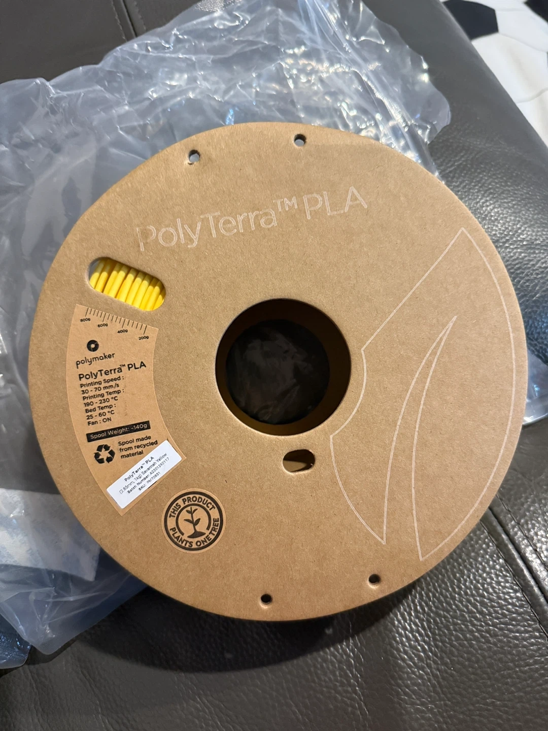 Selling a roll of Polymaker PolyTerra PLA filament in yellow.
