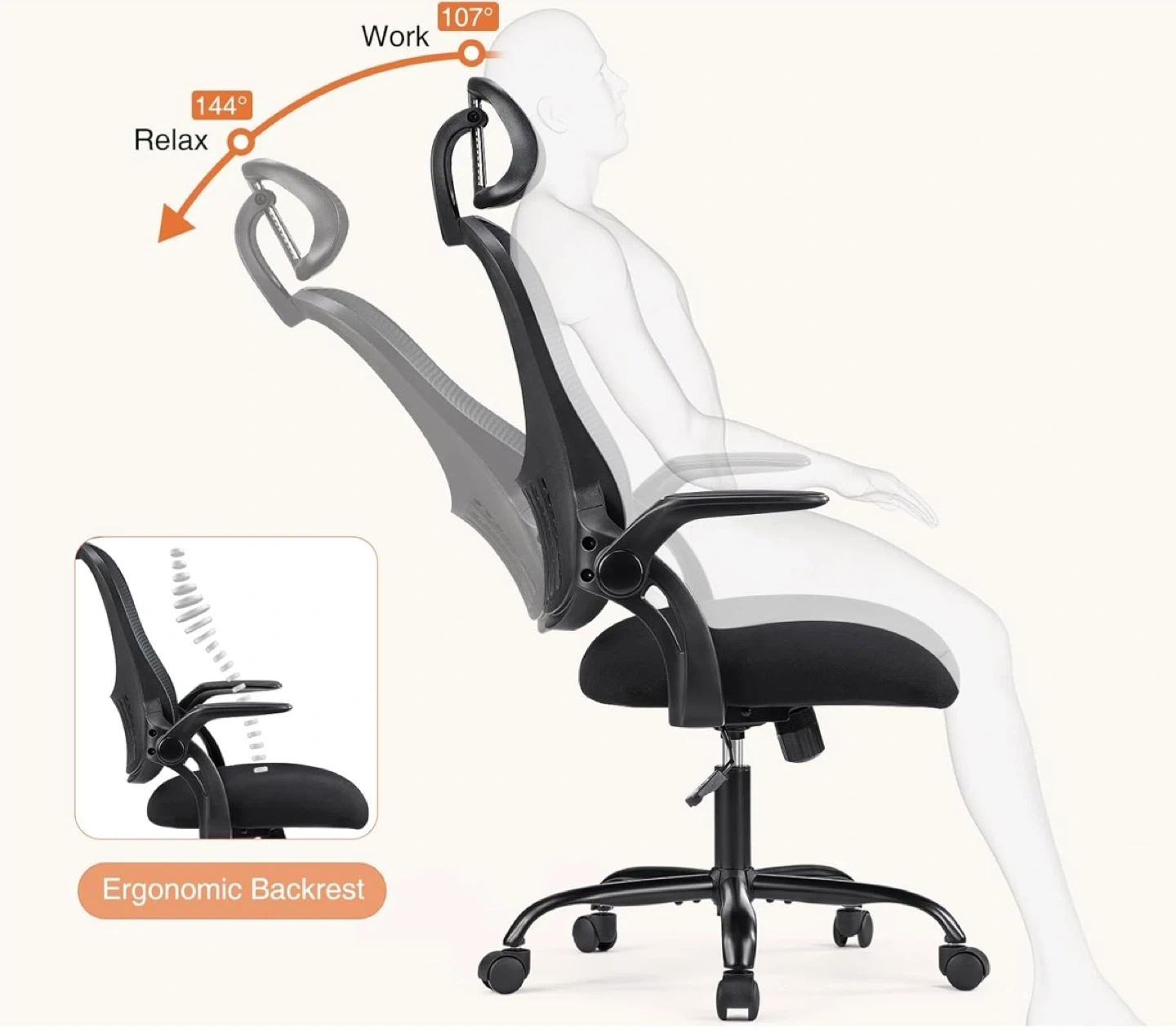 • Flip-up armrests to save space and slide easily under desks — perfect for small rooms or apartments