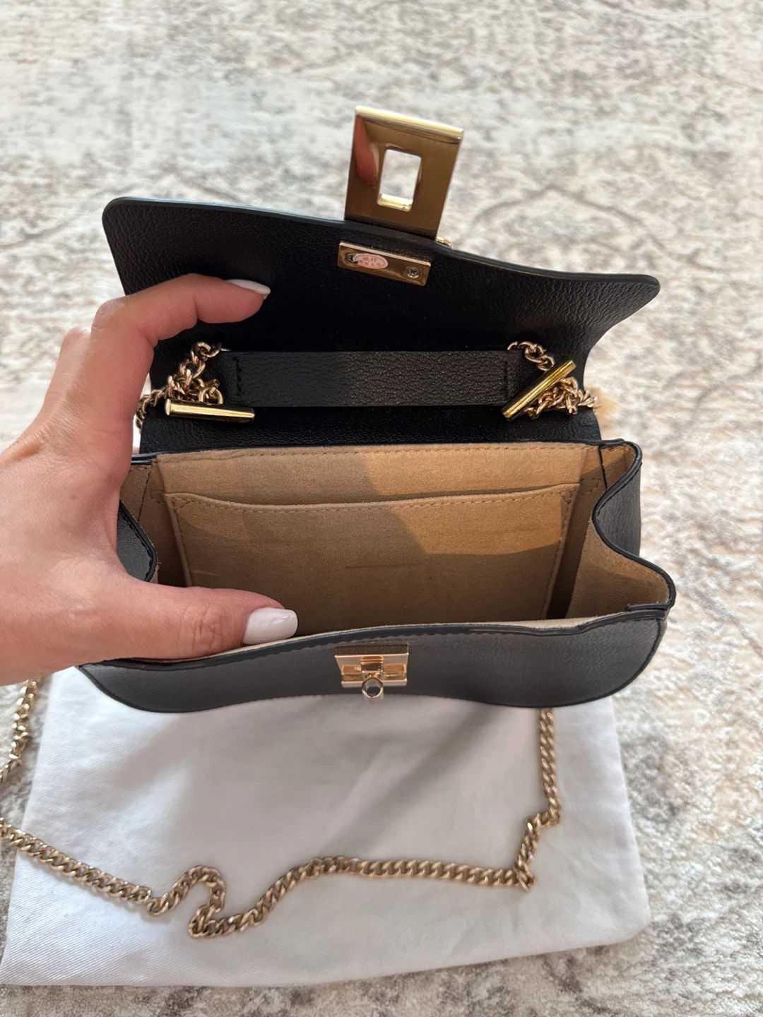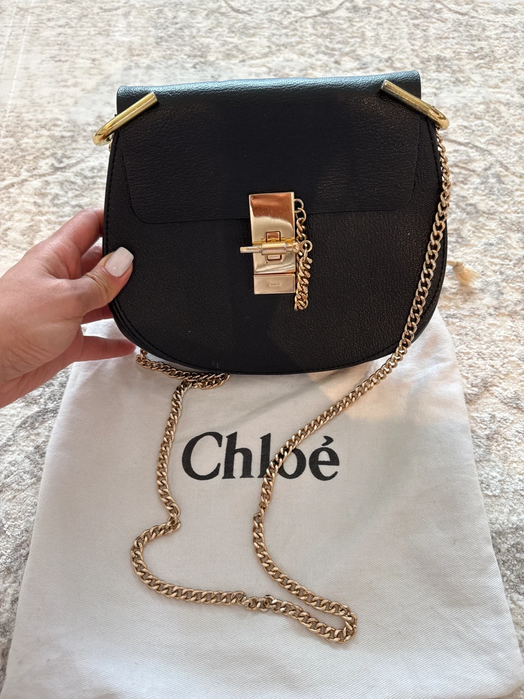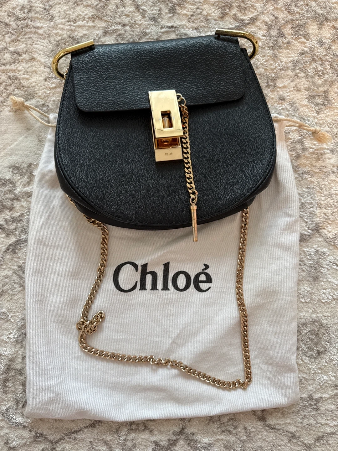 Selling a Chloé Faye Mini shoulder bag in black. It's in good condition and comes with its original dust bag. The bag features a gold chain and hardware. It's a stylish and compact accessory, perfect for everyday use!