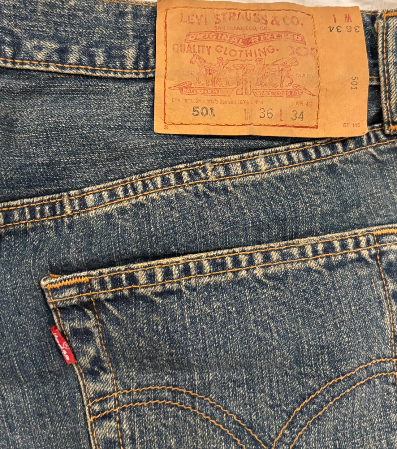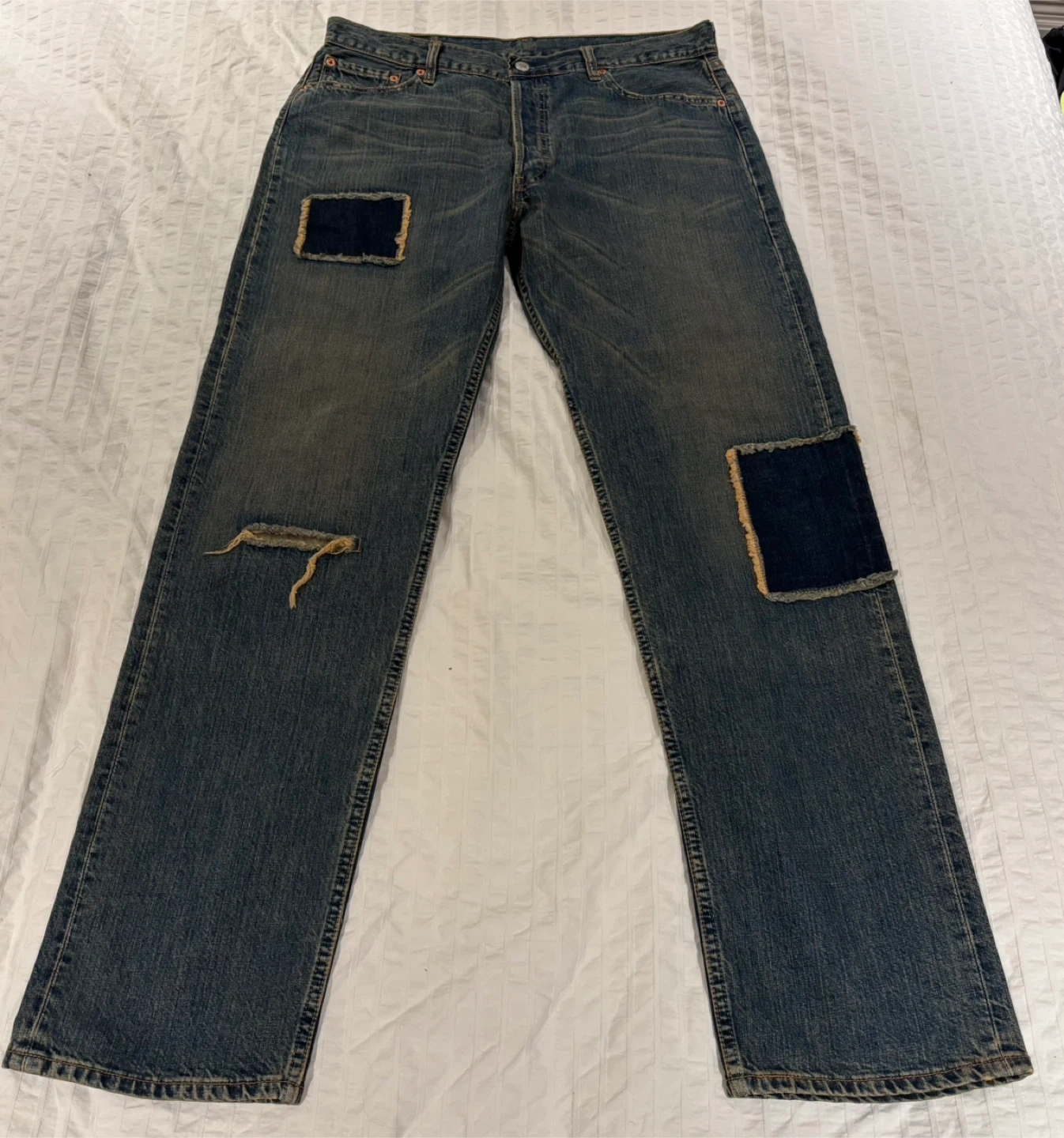 Vintage 2002 Distressed Levi’s 501 Patchwork Jeans Sz W34 L36