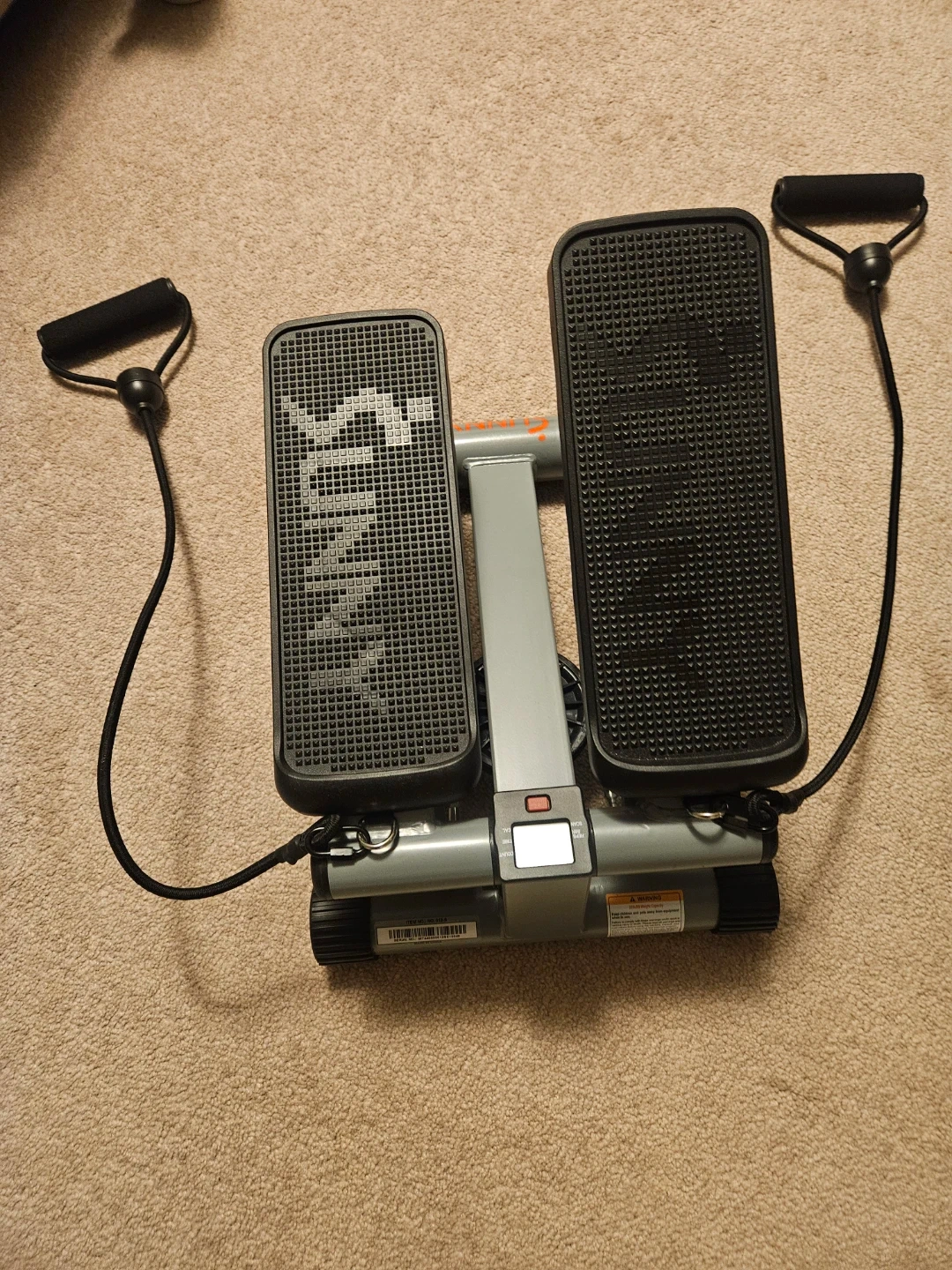 Selling a Sunny Health & Fitness mini stepper! It's in great condition and ready for a new owner. Comes with resistance bands for a full-body workout. Perfect for getting your steps in at home!