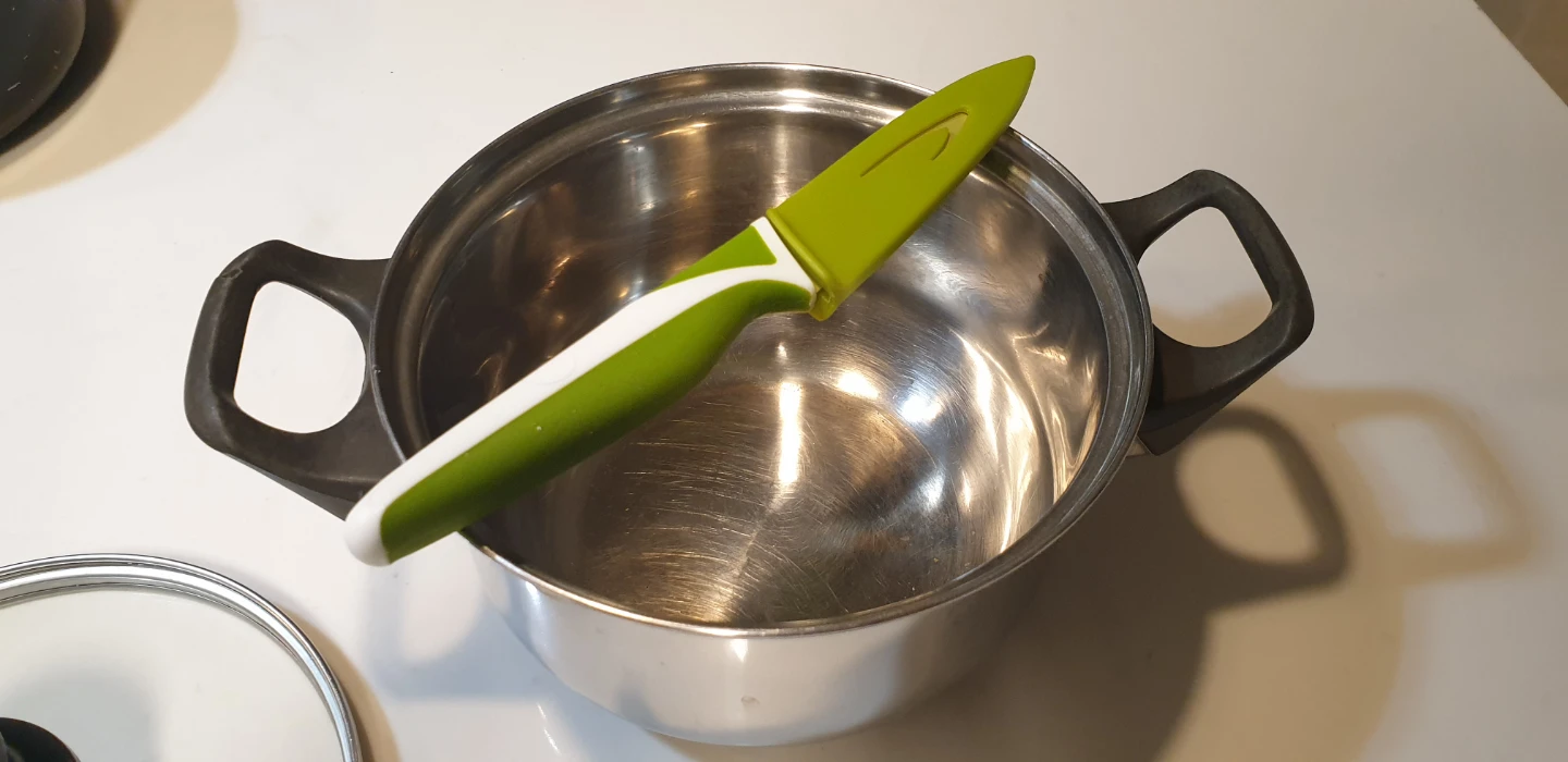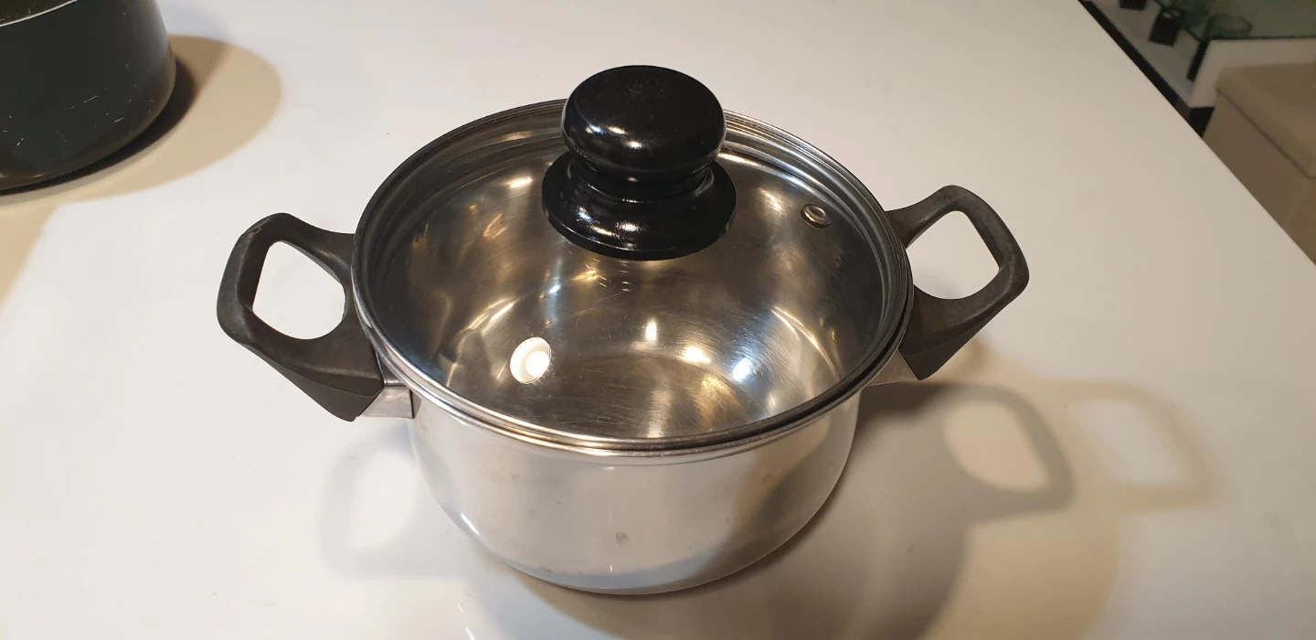 Selling a used stainless steel stock pot with a glass lid. It's in good condition and ready for your kitchen! Perfect for making soups, stews, or sauces