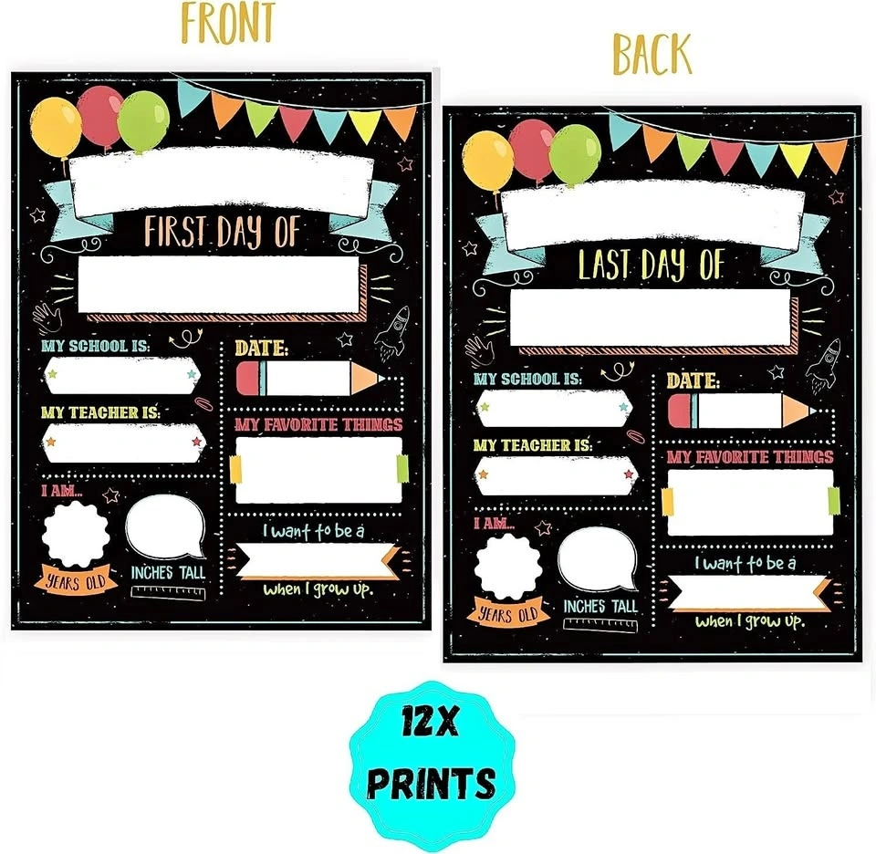 - The first day of school chalkboards are printed on both sides - 1st day front & last day on the back.