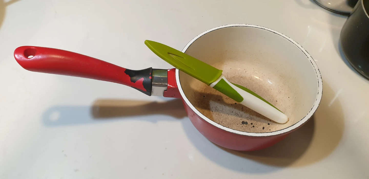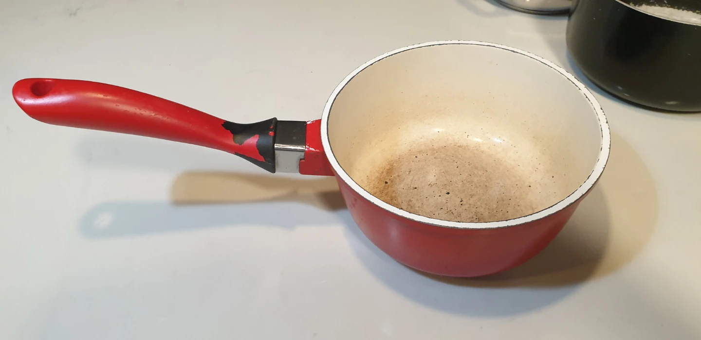Used Sauce Pans - Red and Black
