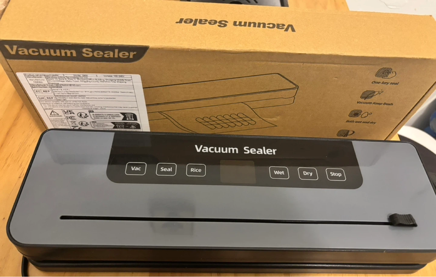 I'm selling a vacuum sealer that's perfect for keeping food fresh! It features a one-key seal and can be used for both wet and dry items. The box and vacuum bags is included!