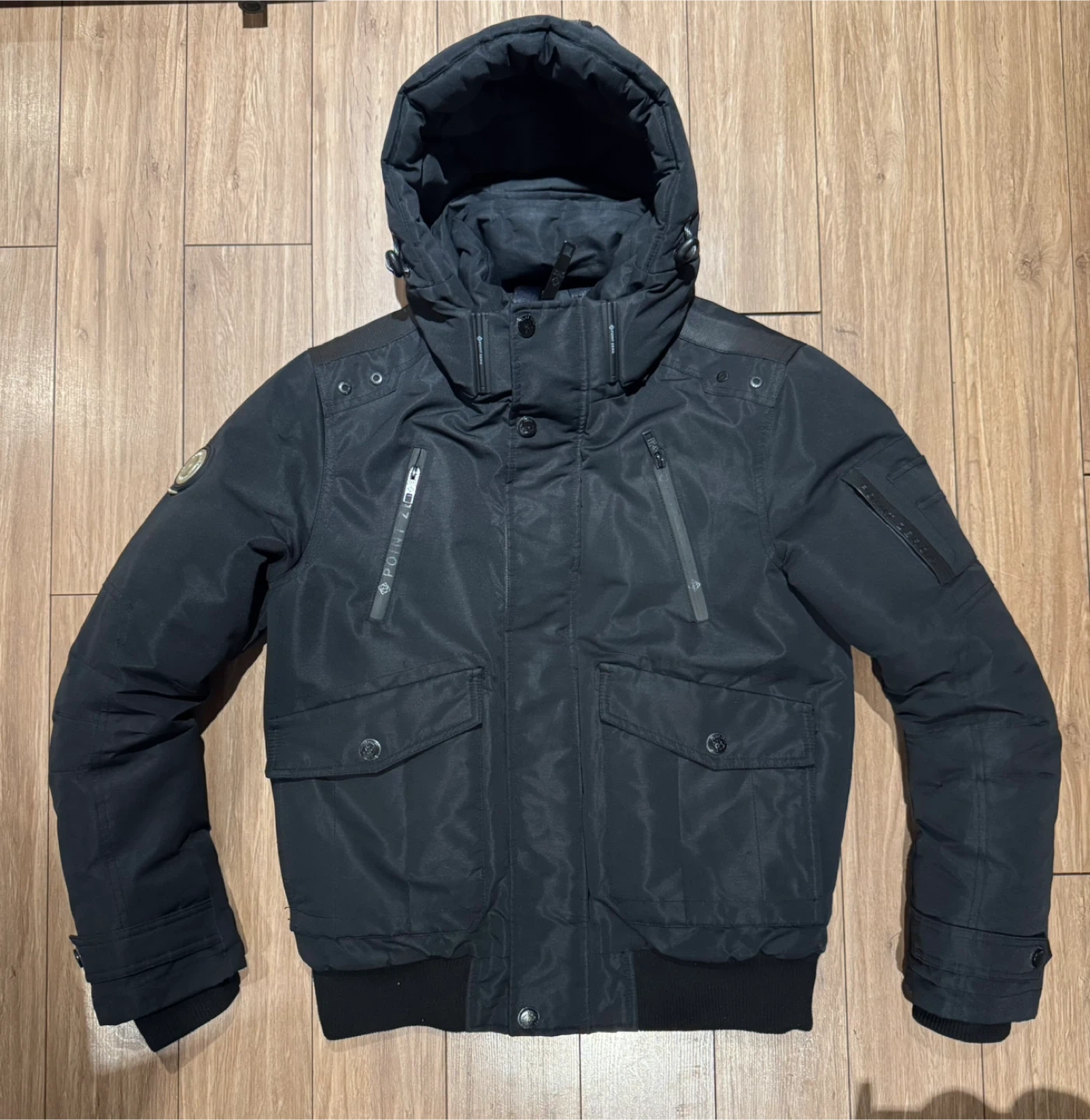 Selling a Point Zero black winter jacket. It’s in great condition and ready to keep you warm this winter! It features a hood and several pockets for storage. Used for one winter season (Winter 2024). It comes with a suitbag.
