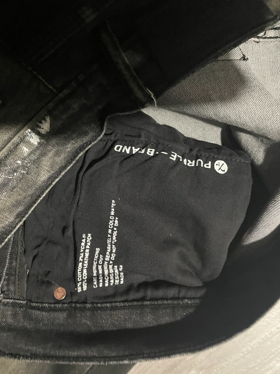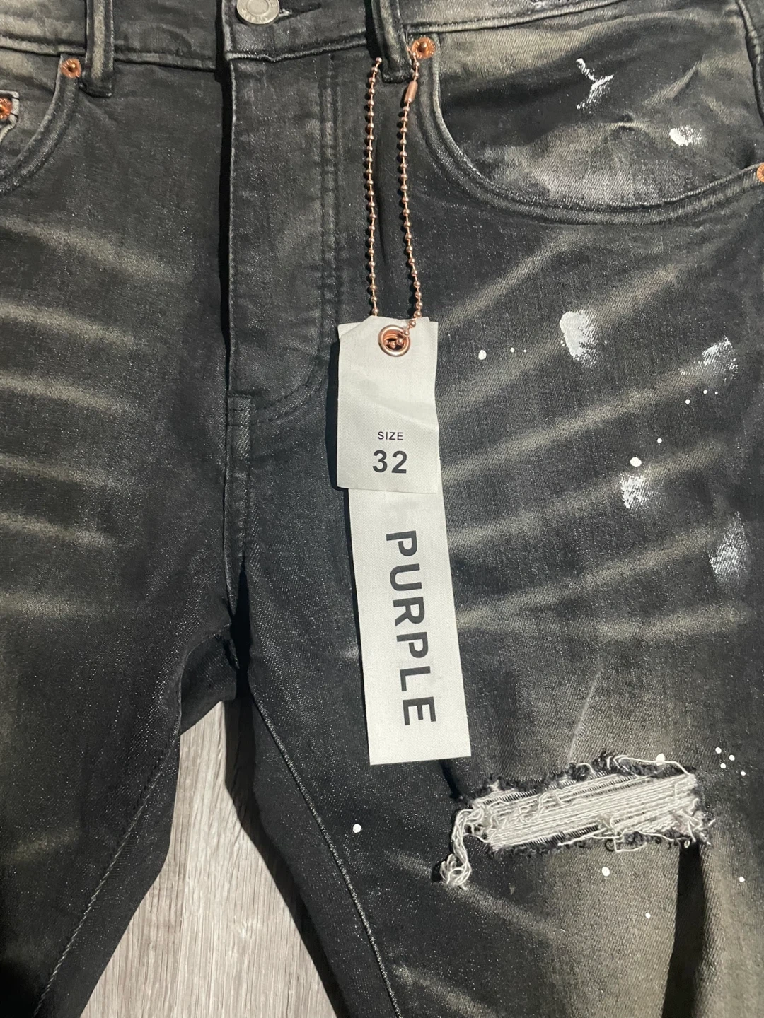 Selling a pair of Purple Brand jeans in size 32. They feature a cool distressed design with paint splatters and rips. Made from a blend of 99% cotton and 1% cow leather patch. These jeans are sure to add some edge to your wardrobe! Pick Up Only