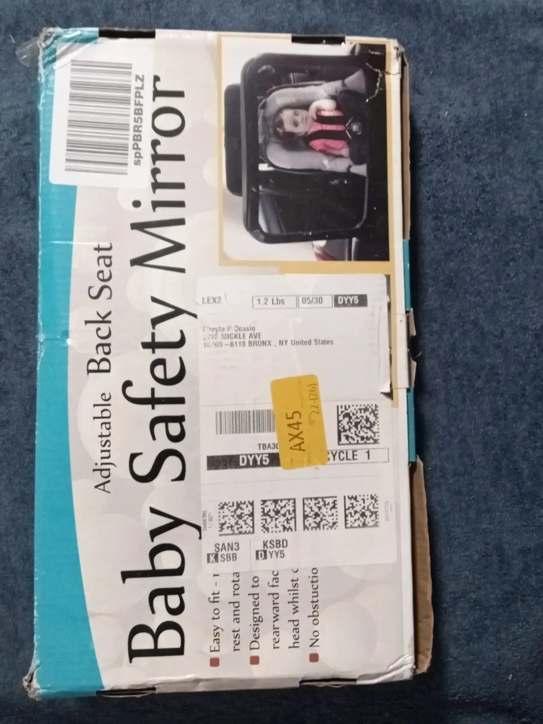 Selling an adjustable baby safety mirror for the back seat. It's designed to easily fit and rotate, ensuring a clear rearward-facing view without obstructing the head