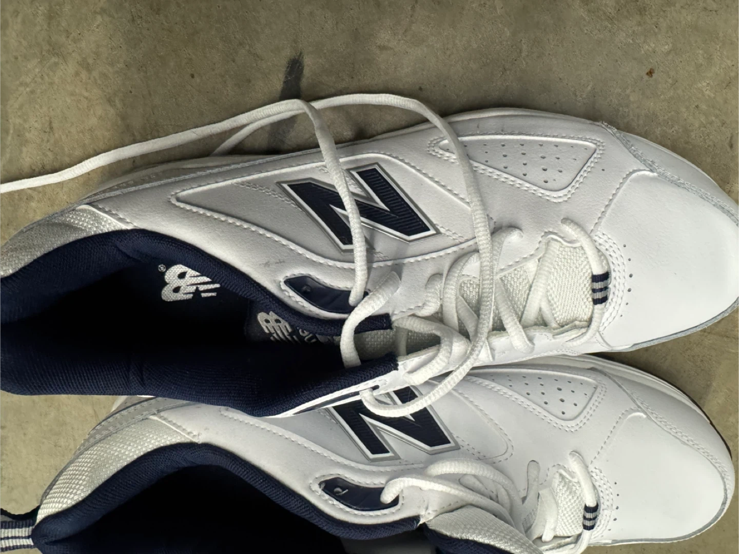 Selling a pair of New Balance MX623V3 men's training shoes in white. They are size 12.5 US. Perfect for your workouts or everyday wear!