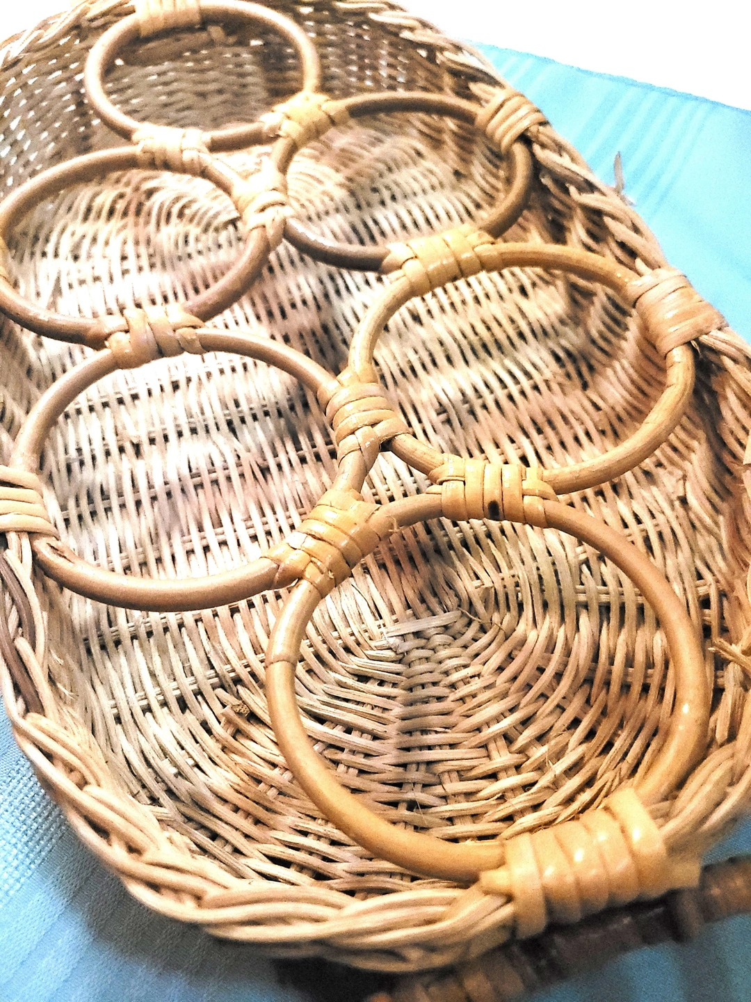 50s Hazel Atlas Highball Glasses with Rattan Caddy
