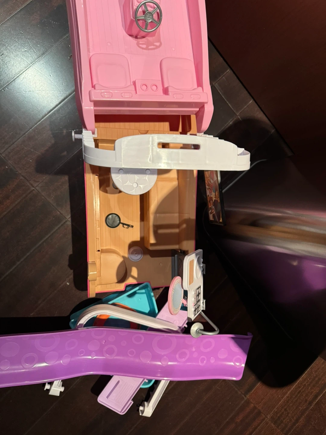 Selling a Barbie Dream Boat, perfect for imaginative play! It's in great condition and ready for new adventures. Features include a kitchen, seating area, and a fun slide for Barbie and her friends. Hours of fun guaranteed!
