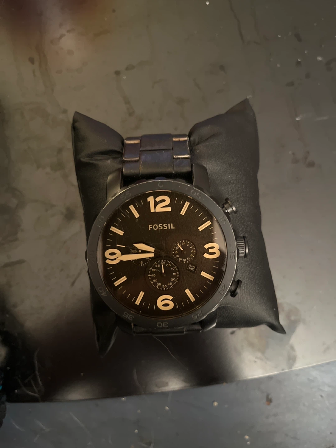 Selling a Fossil watch in black! It's a stylish timepiece that would look great with any outfit. The watch is in good condition and ready to wear. Feel free to reach out if you have any questions!