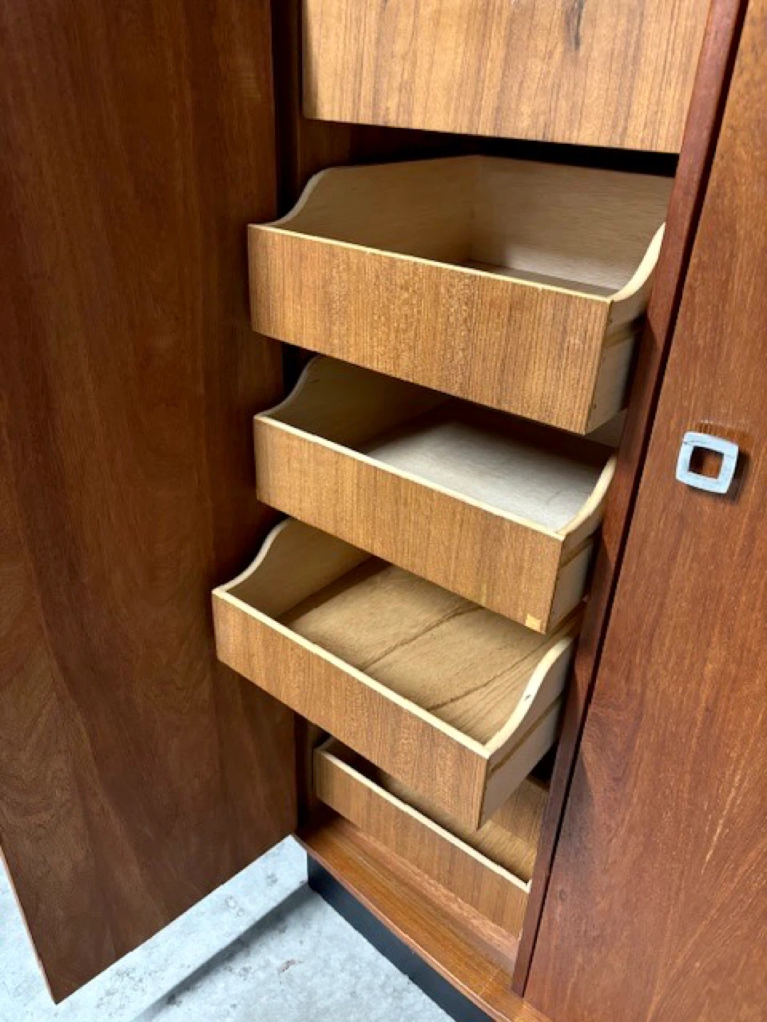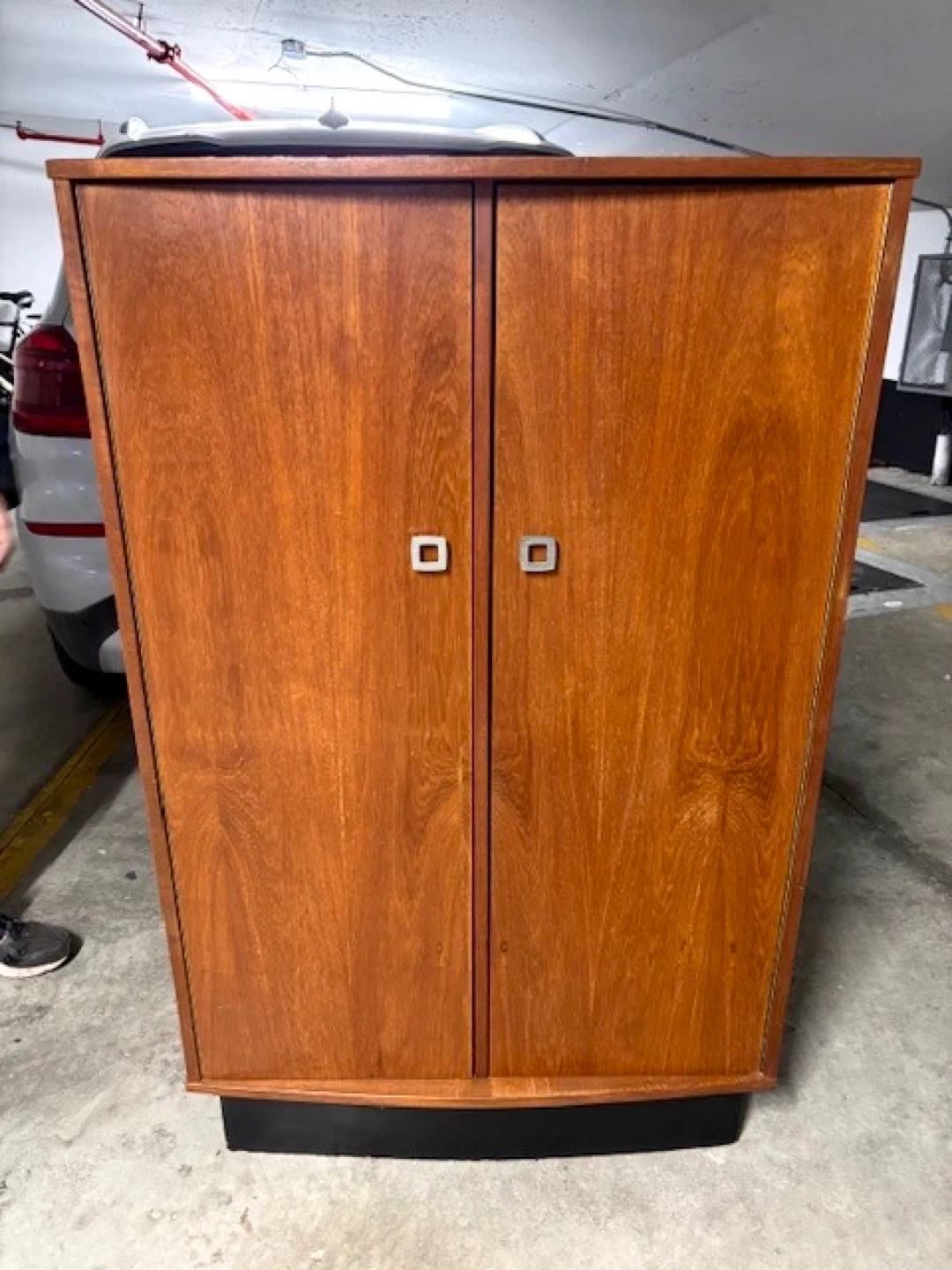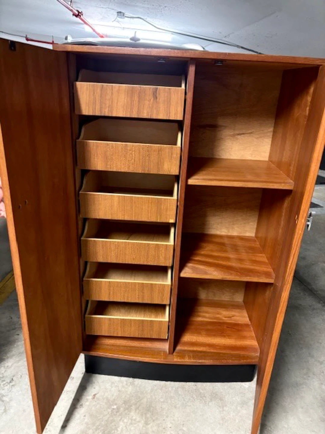 Lightly used, and in great condition! It features a set of drawers on one side and shelves on the other.