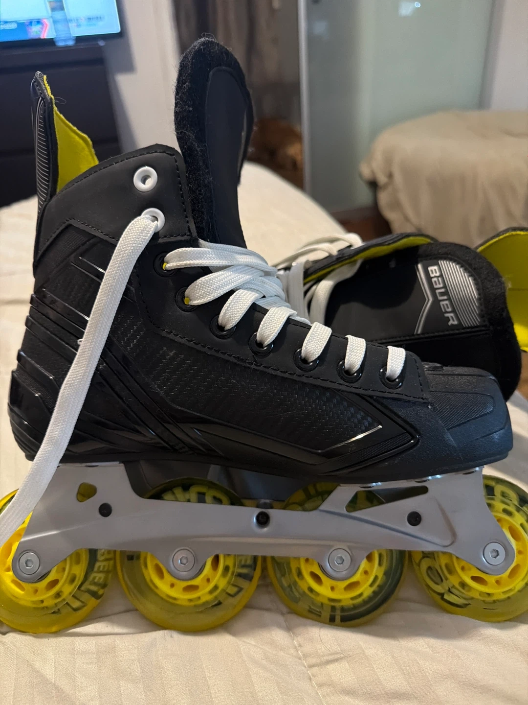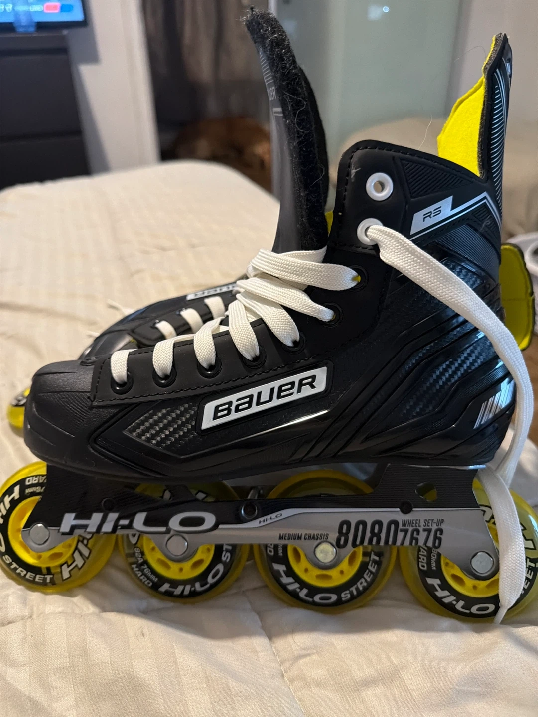 Selling a pair of Bauer RS inline roller blades. They're brand new and ready to hit the pavement or roller rink! The wheels are Hi-Lo. Size 6.