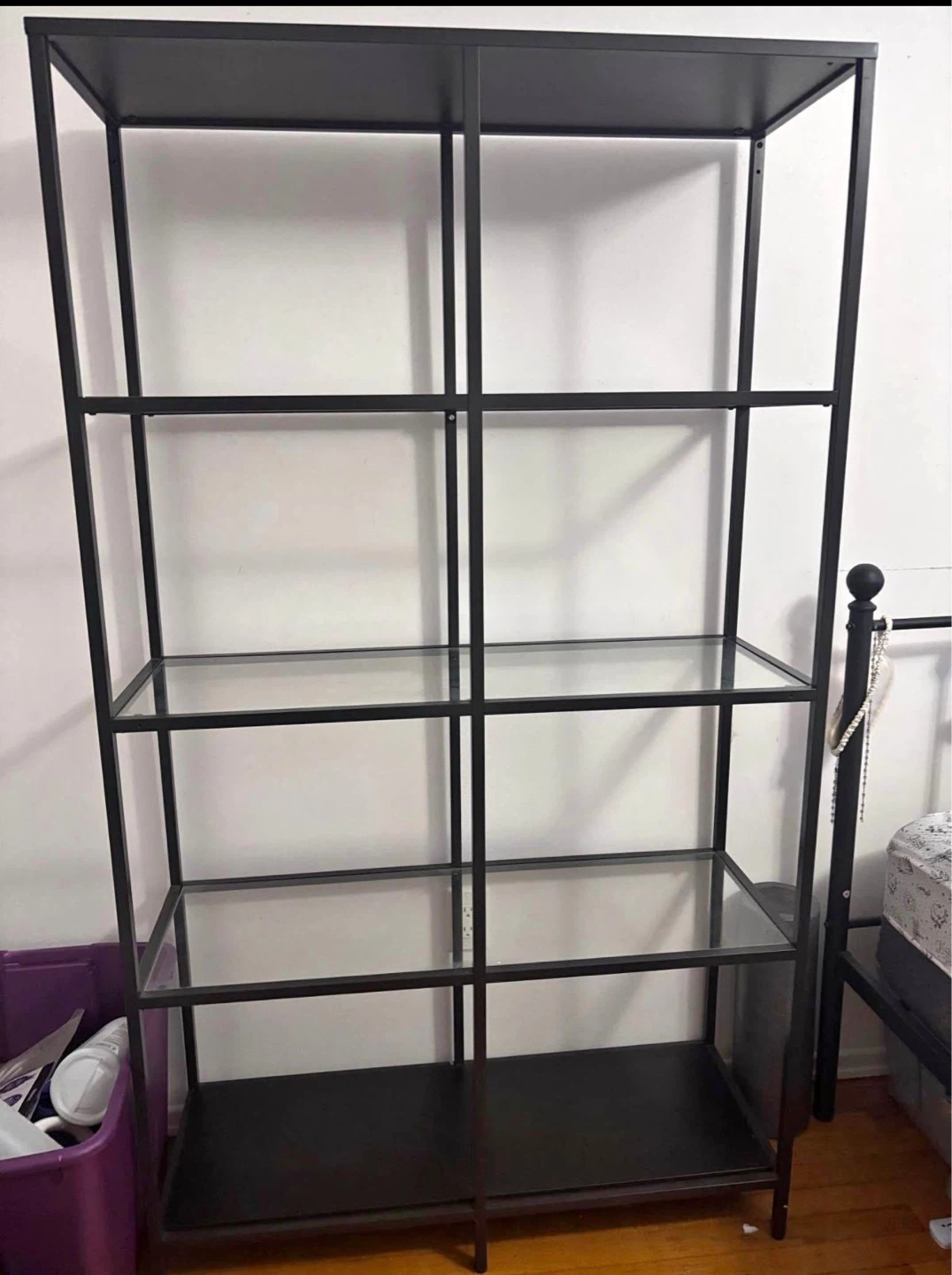 Selling a black IKEA Vittsjö shelving unit! It's in great condition and ready for a new space. The dimensions are approximately 39 3/8" wide, 15 3/8" deep, and 68 7/8" high. Perfect for displaying books, plants, or anything you'd like