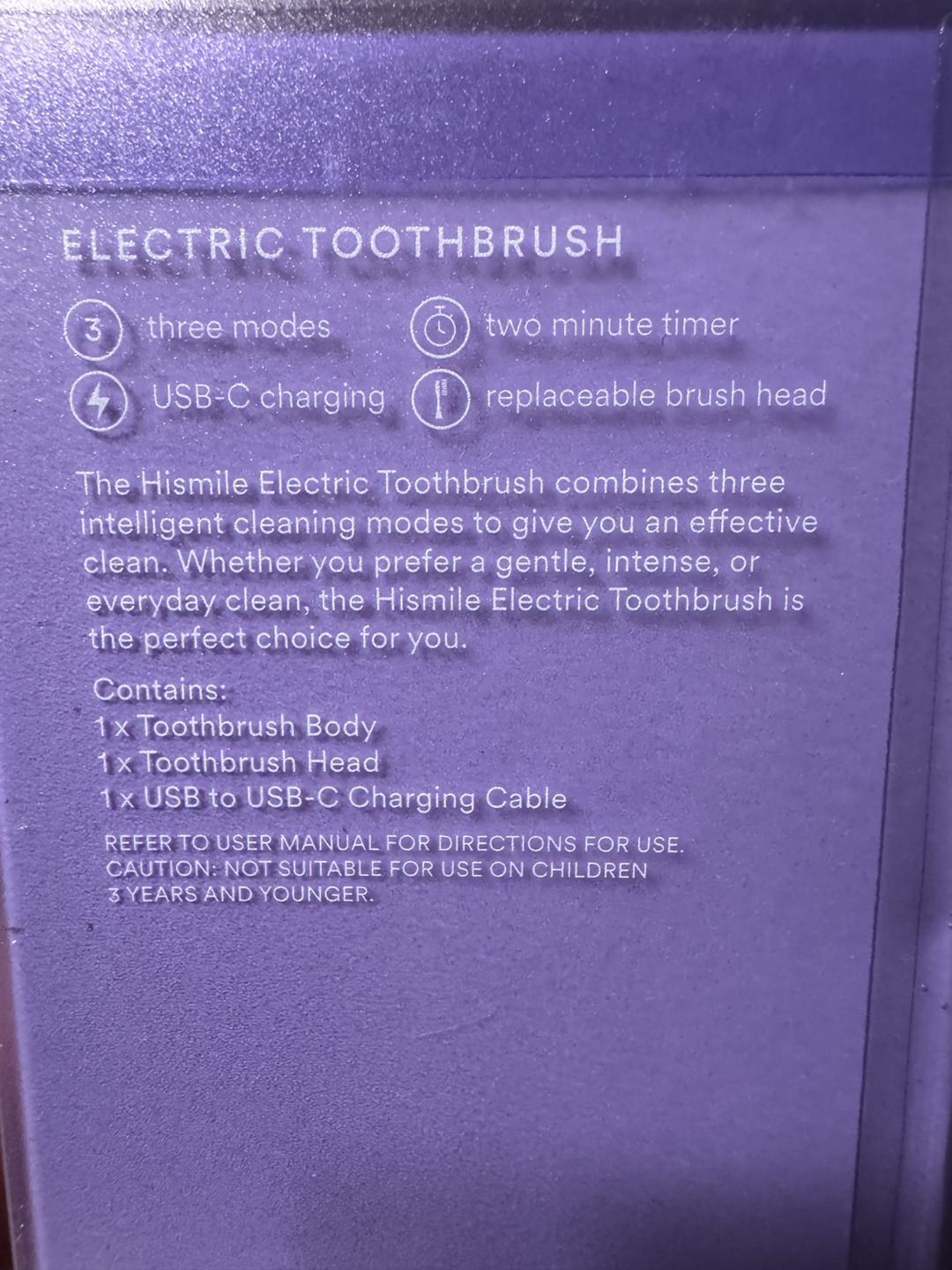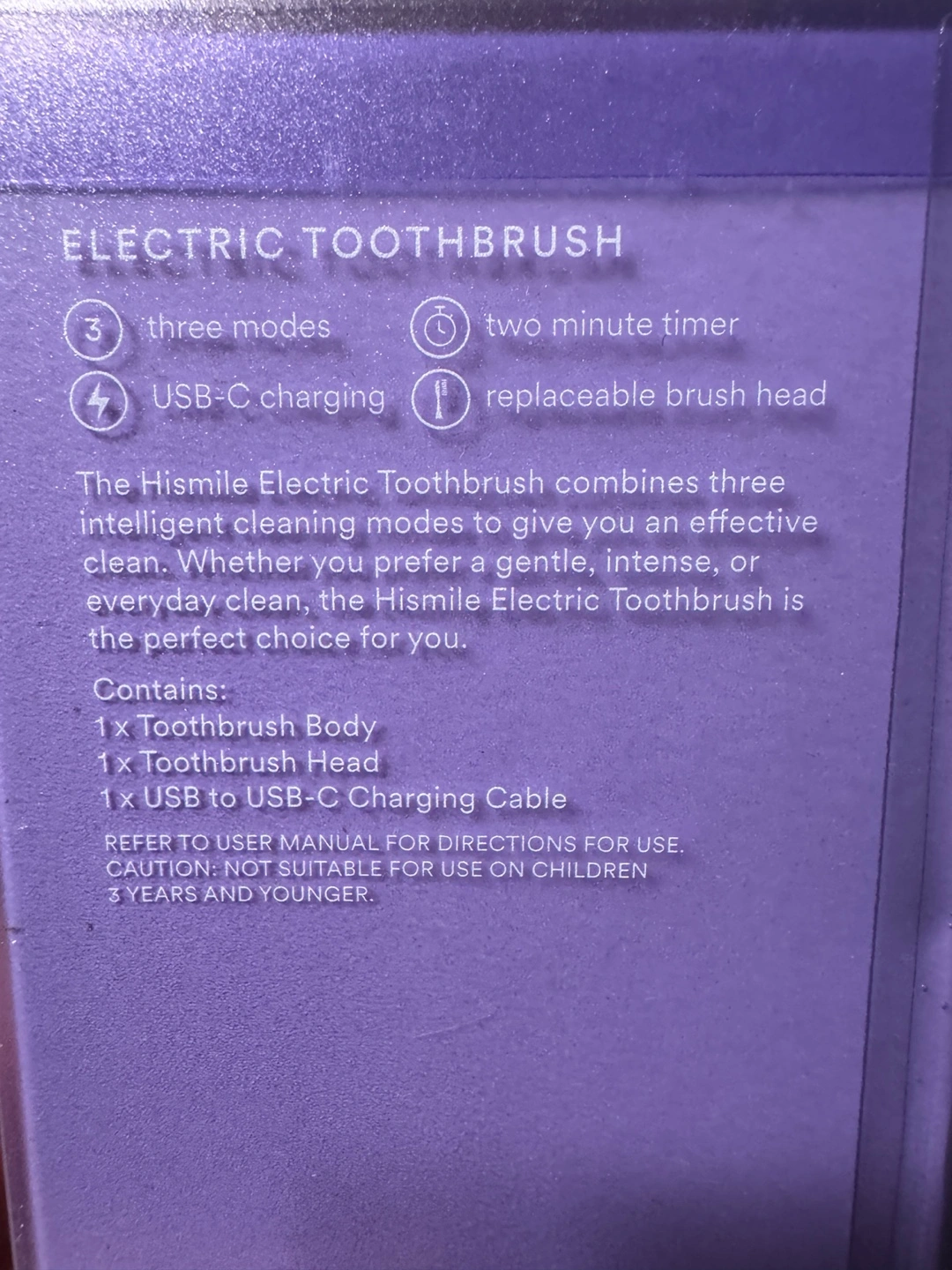 Selling a brand new hismile electric toothbrush! This toothbrush has three modes, a two-minute timer, and USB-C charging. It also has a replaceable brush head.