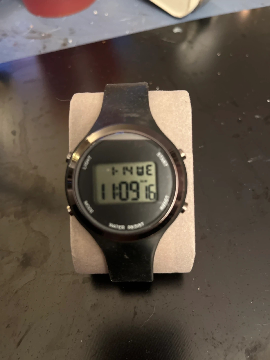 Selling a black digital watch. It's in good condition and ready for a new wrist! Water resistant.