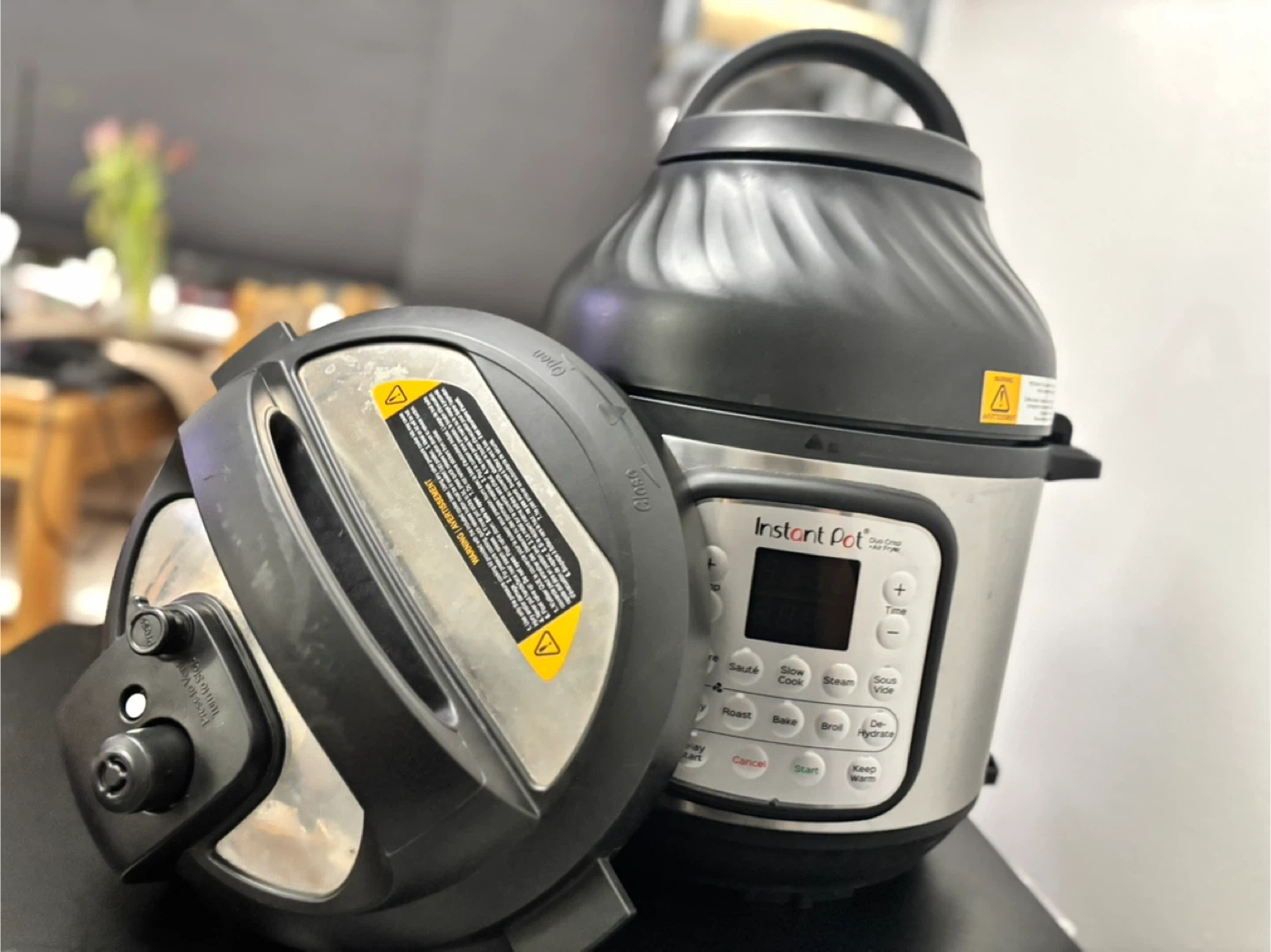 Selling an Instant Pot Duo Crisp + Air Fryer. It's in great condition and ready to help you make delicious meals! It comes with the air fryer lid and inner pot, plus the air fryer basket and trivet for all your cooking needs