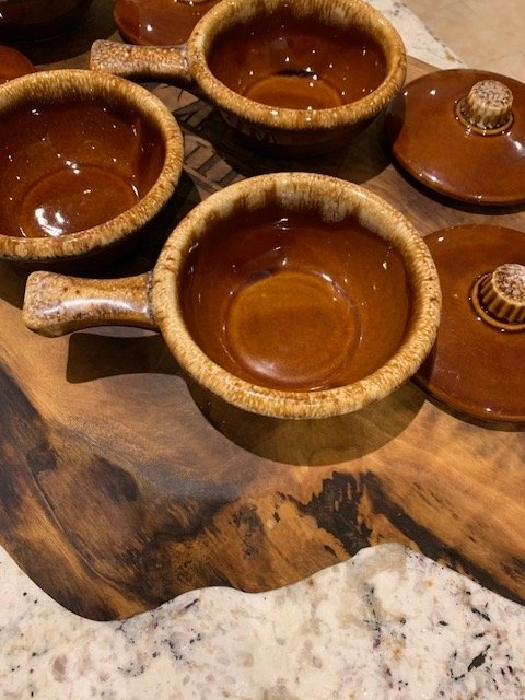 Vintage Hull Pottery Covered Soup Bowls / Crocks