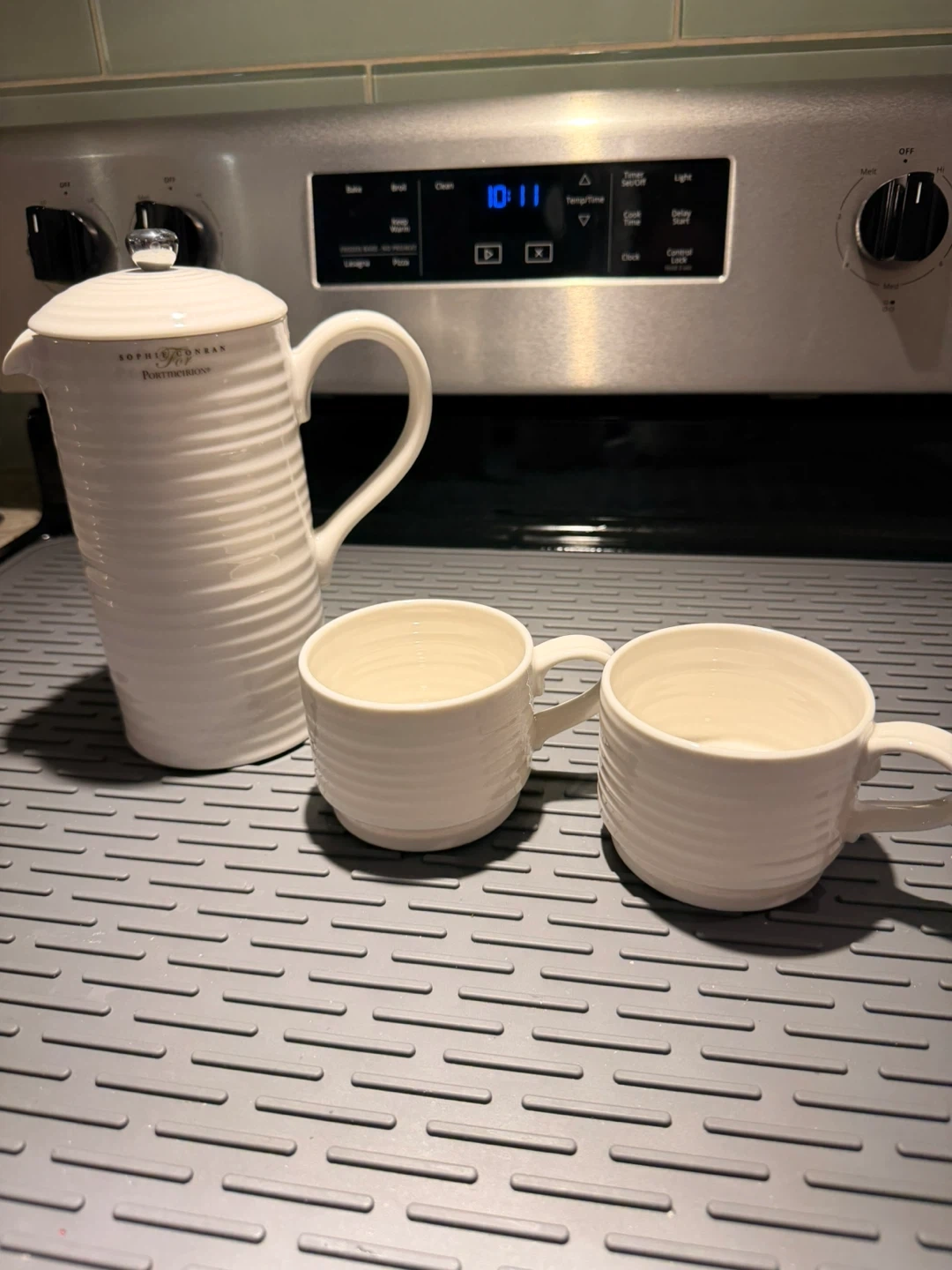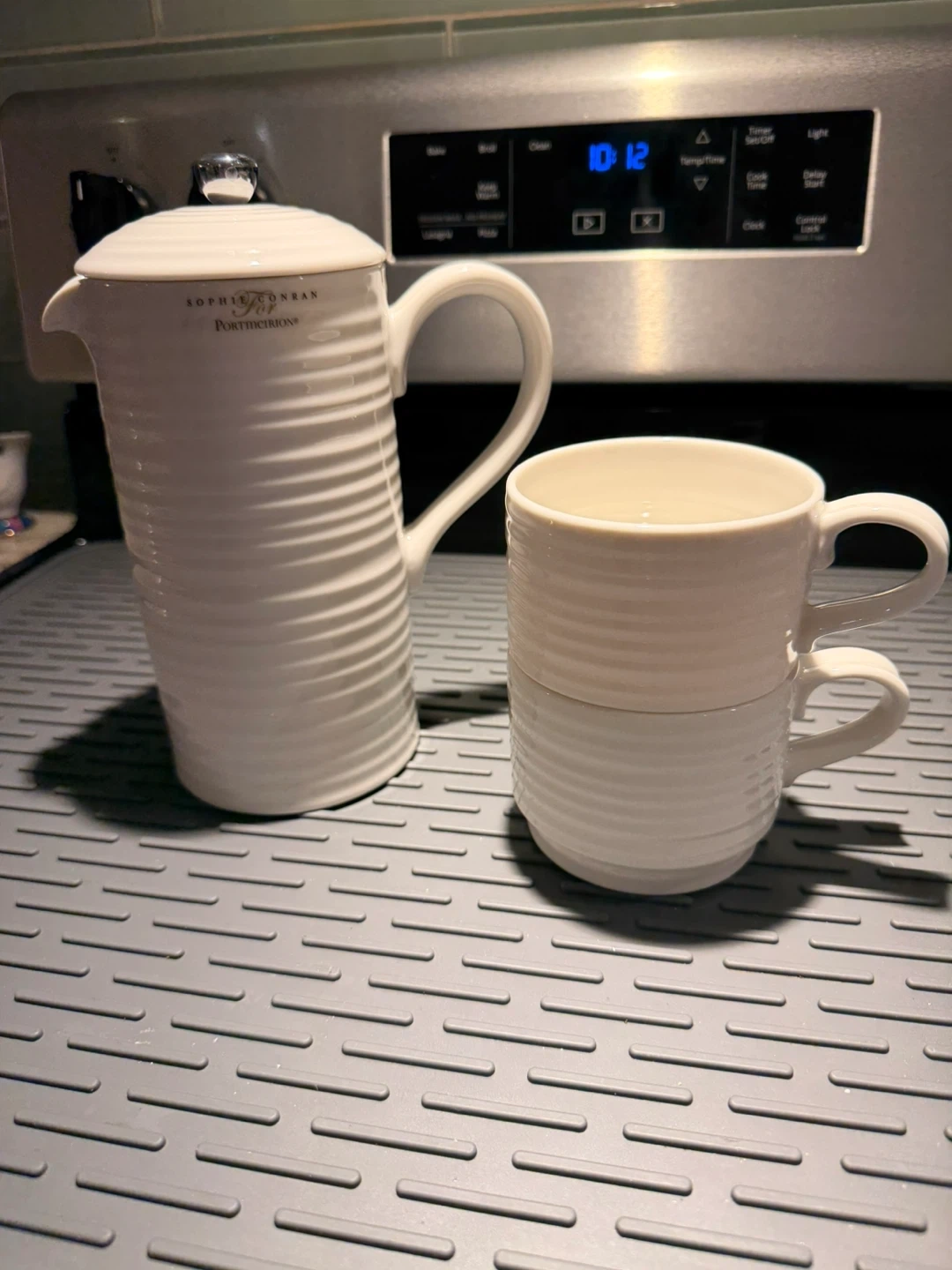 Selling a Sophie Conran for Portmeirion French press with two matching mugs. This set is in great condition and perfect for coffee or tea lovers. The French press has a lovely ridged design, and the mugs are the perfect size for a cozy cuppa!