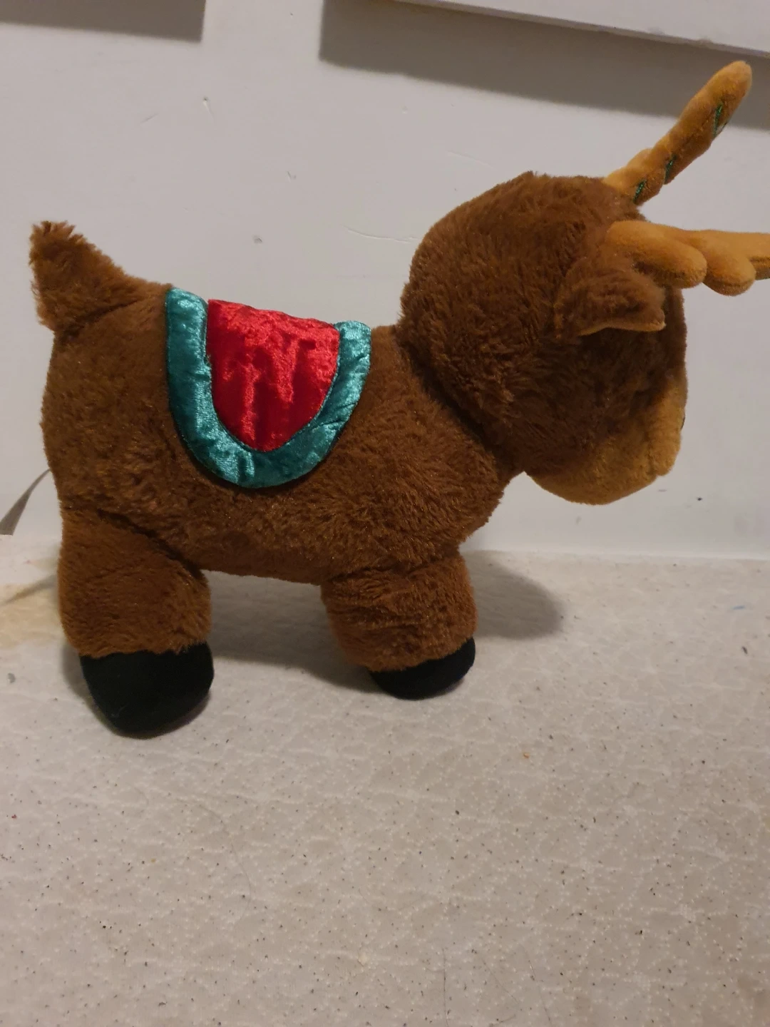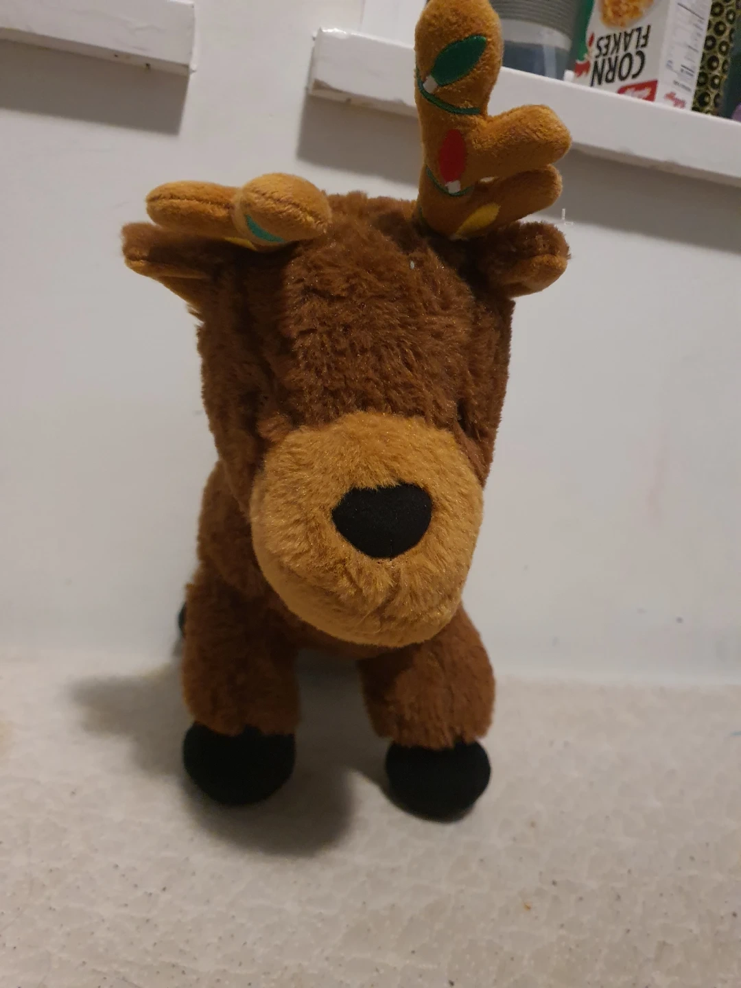 A cute reindeer plush toy is looking for a new home! It's in great condition and has a soft, cuddly feel. Perfect for kids or as a festive decoration for the holidays