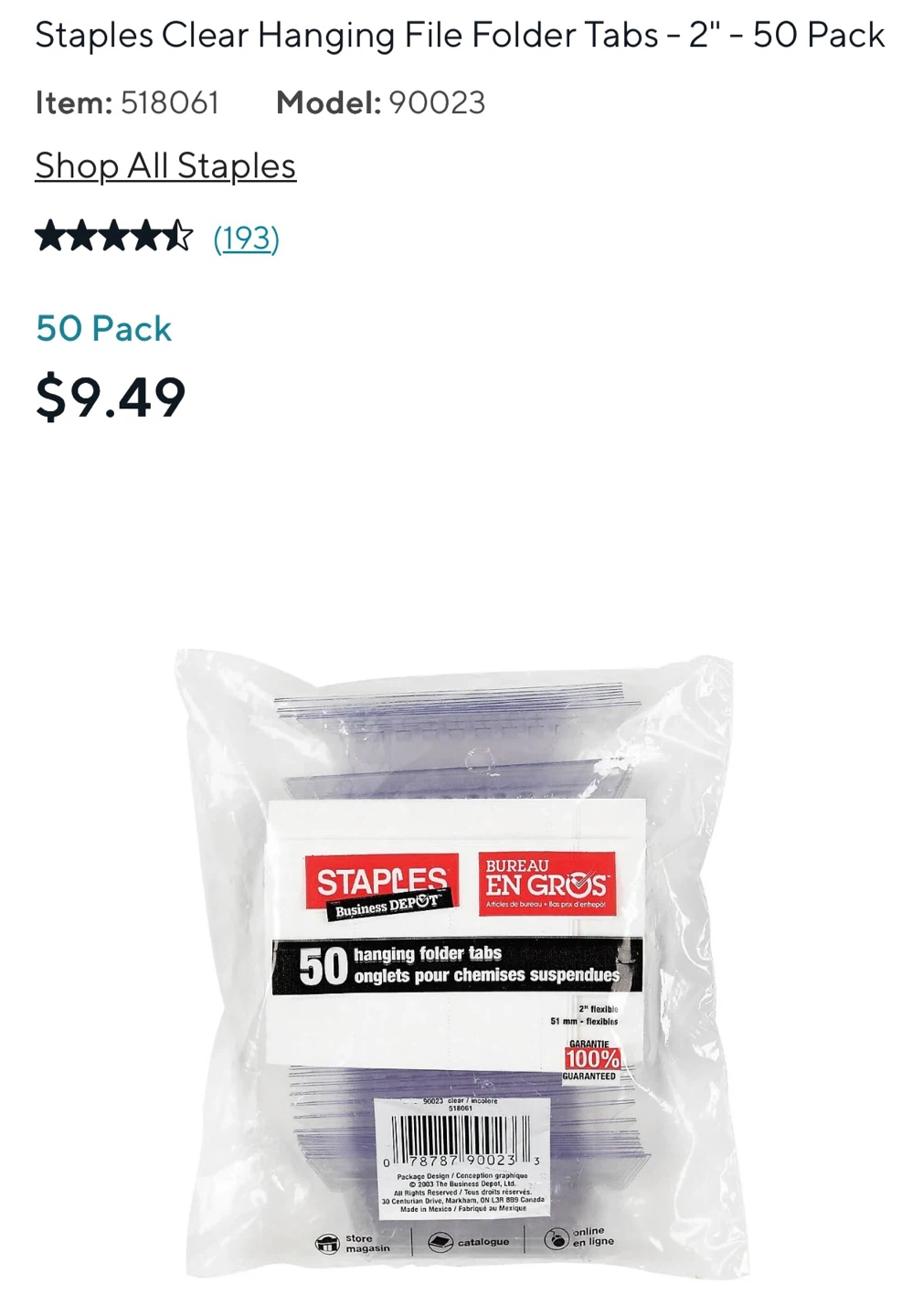 1 / 21 / 2Buy & SellStaples Clear Hanging File Folder Tabs - 2" - 50 PackStaples Clear Hanging File Folder Tabs - 2" - 50 Pack$5Selling a pack of Staples clear hanging file folder tabs. - 2" Flexible - 51 mm - flexibles - 48 pack - Includes blank paper insertsConditionNewWHERE TO MEETBrentwood MallView MapSELLERverifiedRyanBrentwood964 reviews0 chats·0 favorites·5 viewsSEND CHAT TO SELLERHi Ryan! I’m interested in your listing.Hi Ryan! I’m interested in your listing.Get the Karrot app to chatSign In to chat