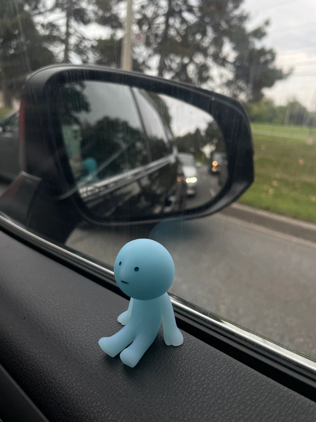 A cute little blue smiski figure is looking for a new spot to sit! It's in great condition and ready to brighten up your car or desk