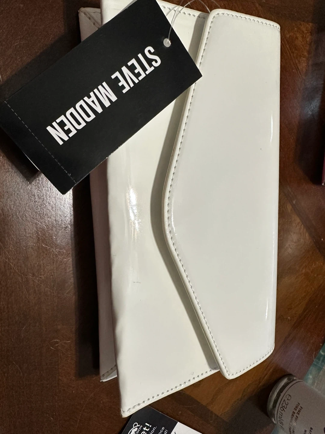 Selling a brand new Steve Madden clutch! It's a beautiful white colour and comes with the original tags still attached. Perfect for a night out or special occasion! Includes a gold chain strap.