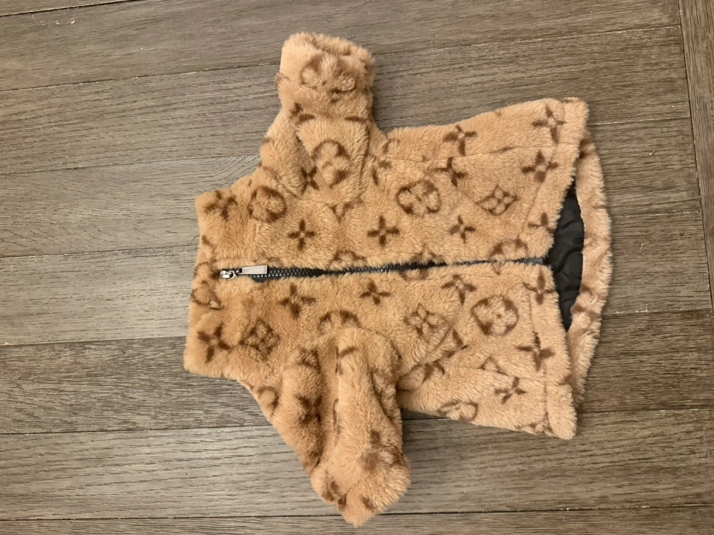 Keep your furry friend warm and stylish with this Louis Vuitton inspired dog coat! The coat features a soft, plush material and a unique design that will make your dog stand out from the pack