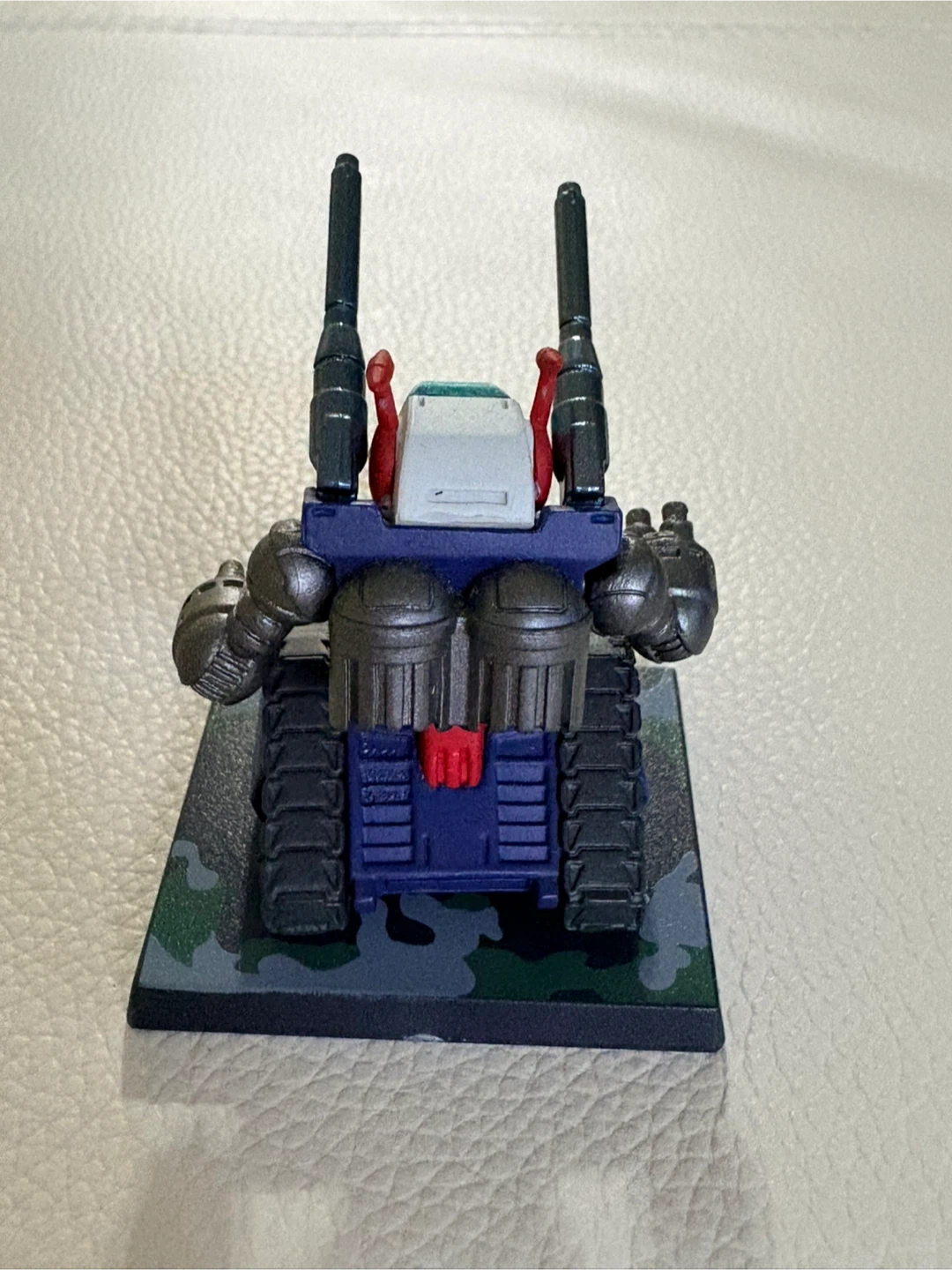 Selling a Gundam model kit! It appears to be in good condition, with a blue, red, and silver colour scheme. It features a tank-like base and multiple gun attachments. Great for any fan of Gundam!