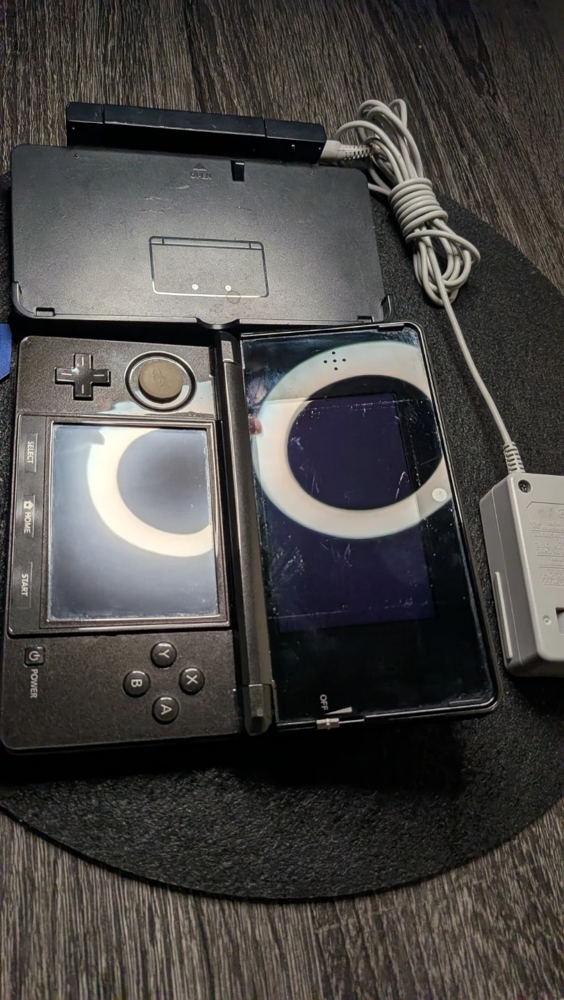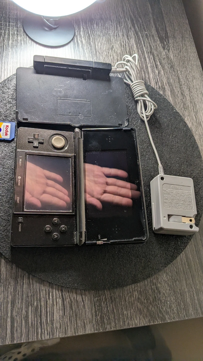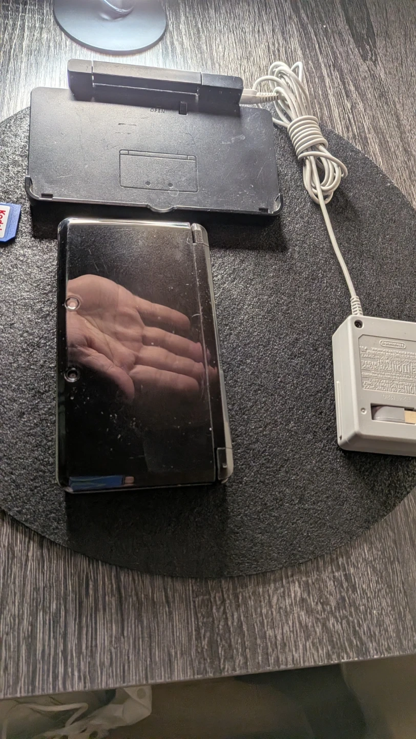 Selling a used Nintendo 3DS handheld console in black. It comes with the charger and a Kodak 8GB memory card. Perfect for gaming on the go! Also include docking station and 2 regular DS games to get ya started