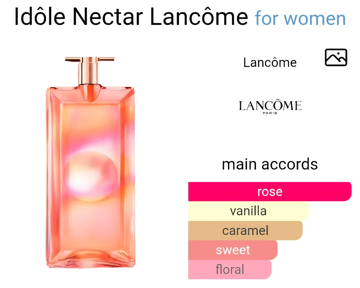 Selling a Lancôme Idôle Nectar Eau de Parfum. This is a 50ml bottle of the fragrance. The main accords are rose, vanilla, caramel, sweet, and floral.