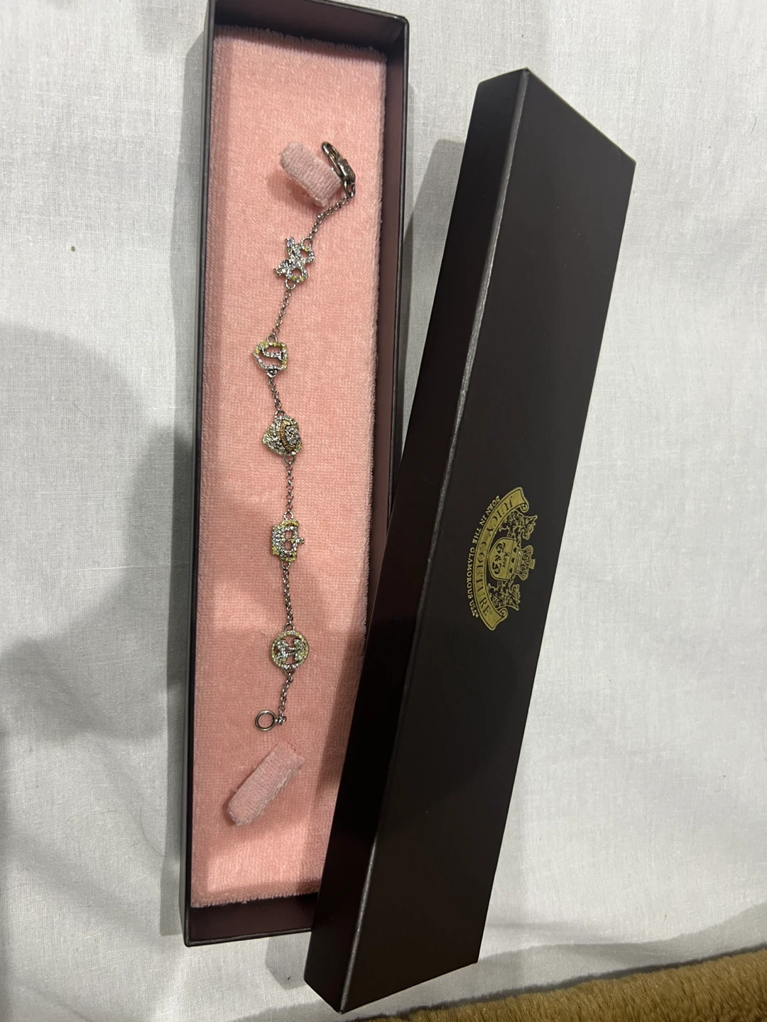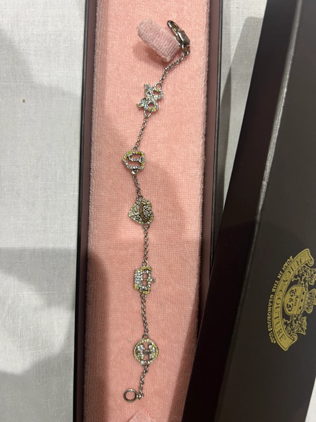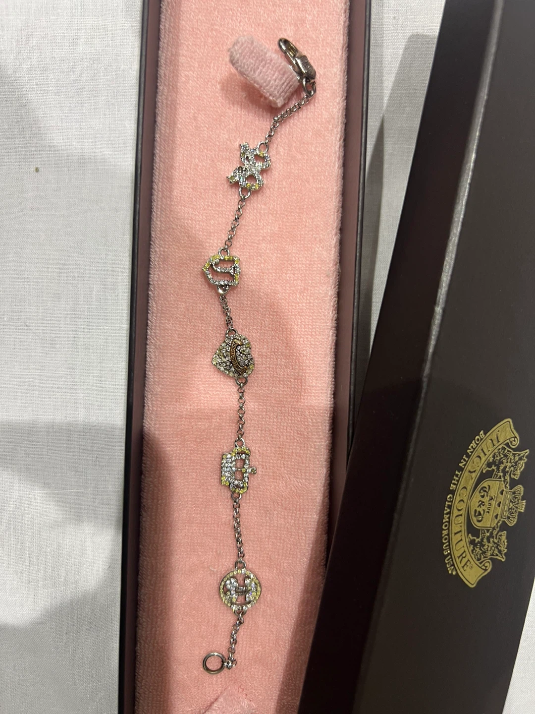 Selling a Juicy Couture charm bracelet! It comes with its original box. The bracelet is in goos condition and features a variety of cute charms. Perfect for adding a touch of glamour to any outfit!