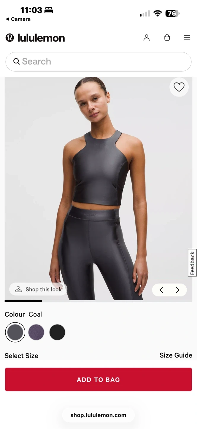 Gym Workout Lululemon Satin Shine Cropped Tank