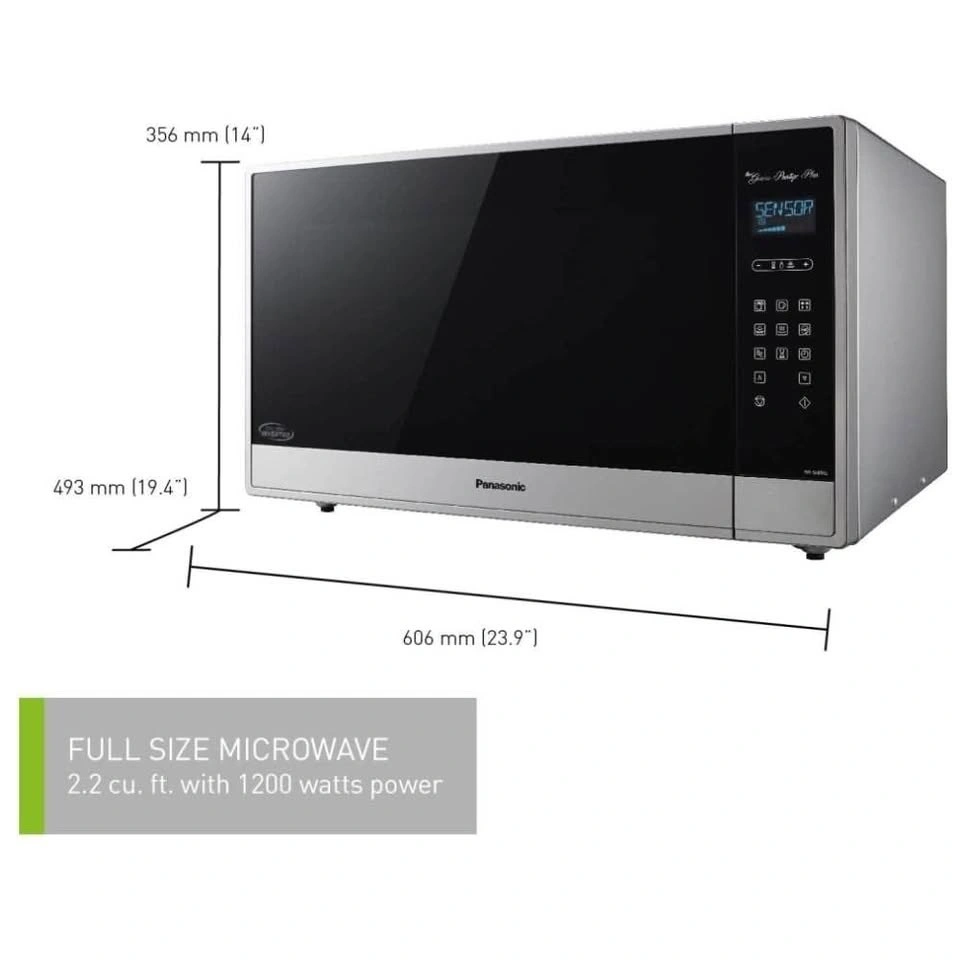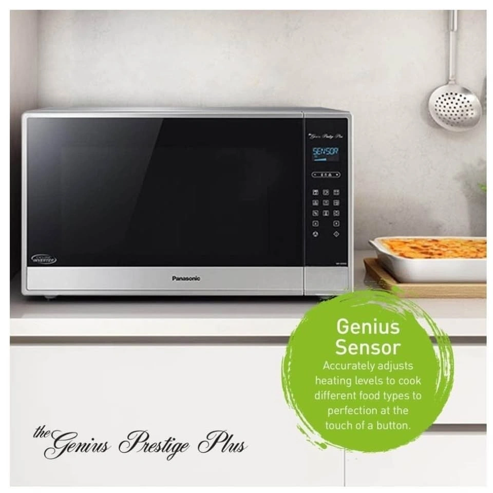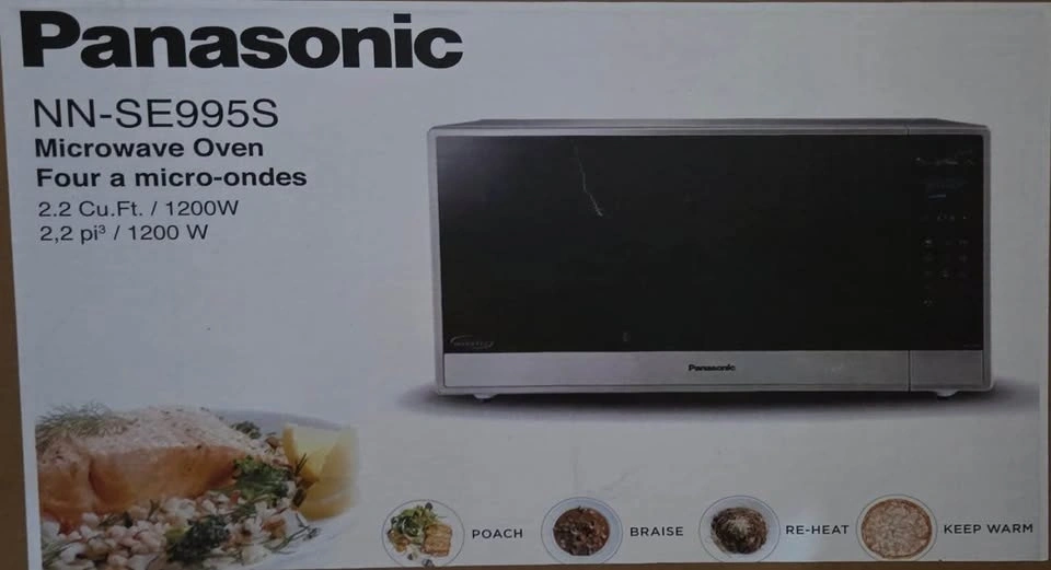 Brand new Panasonic NNSE995SC countertop microwave. It has a generous 2.2 cu. ft. capacity and a sleek stainless-steel finish. Features advanced Cyclonic Inverter®️ technology, Genius®️ Sensor Cook and Reheat, and Inverter®️ Turbo Defrost.