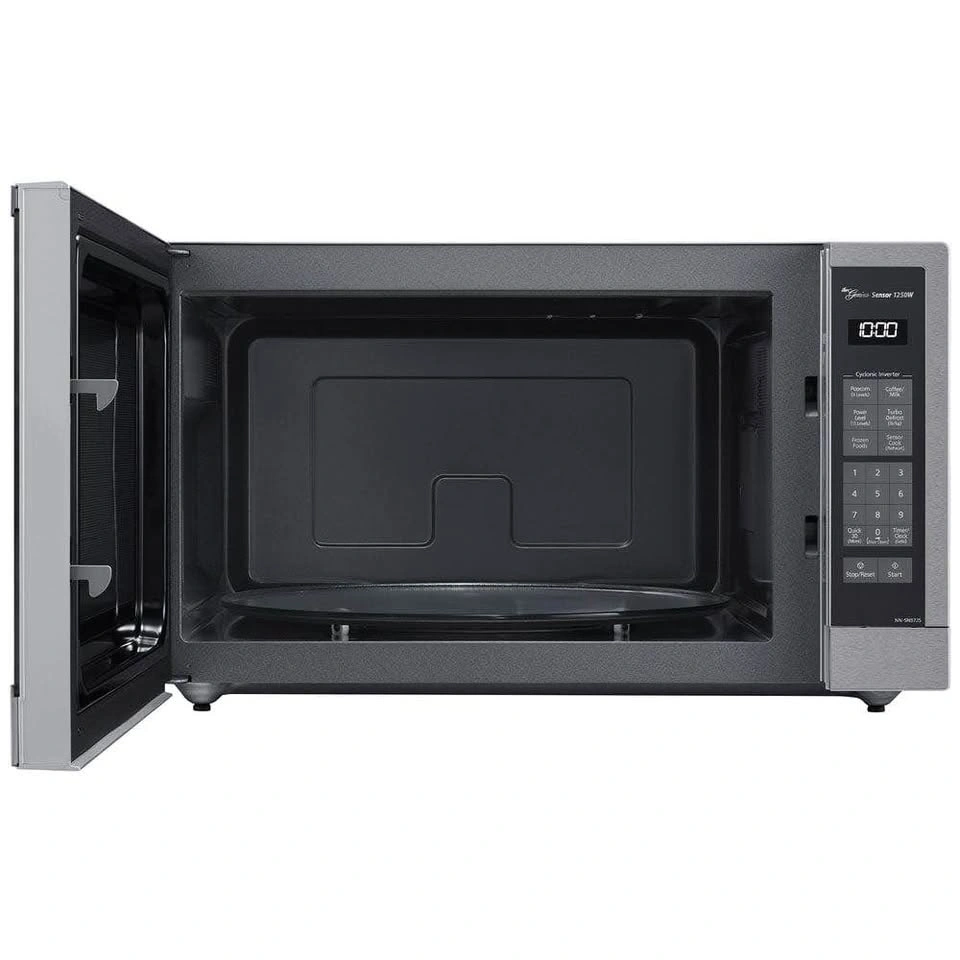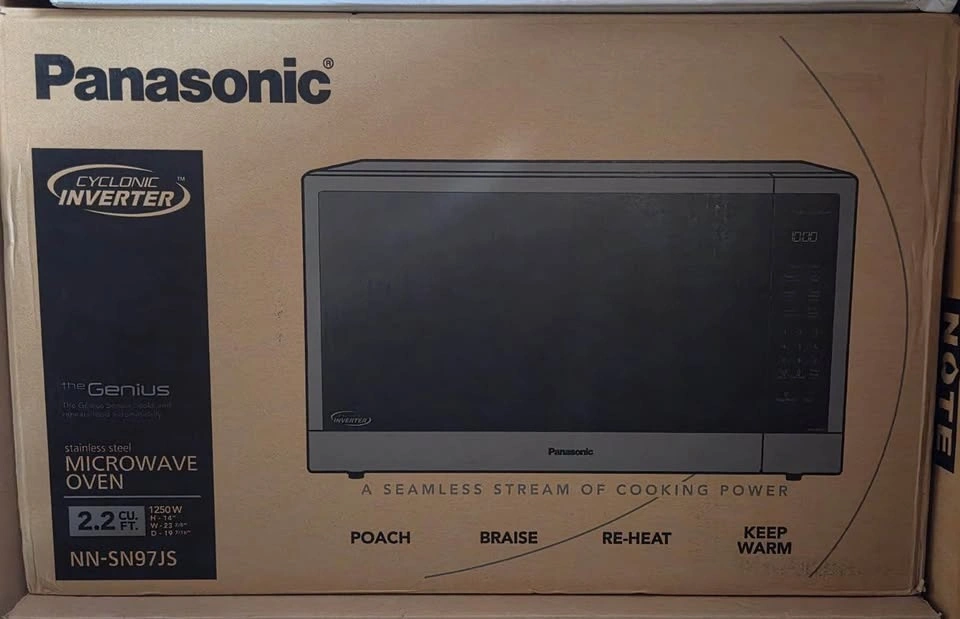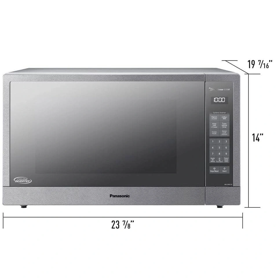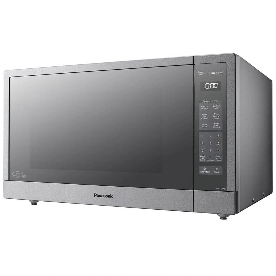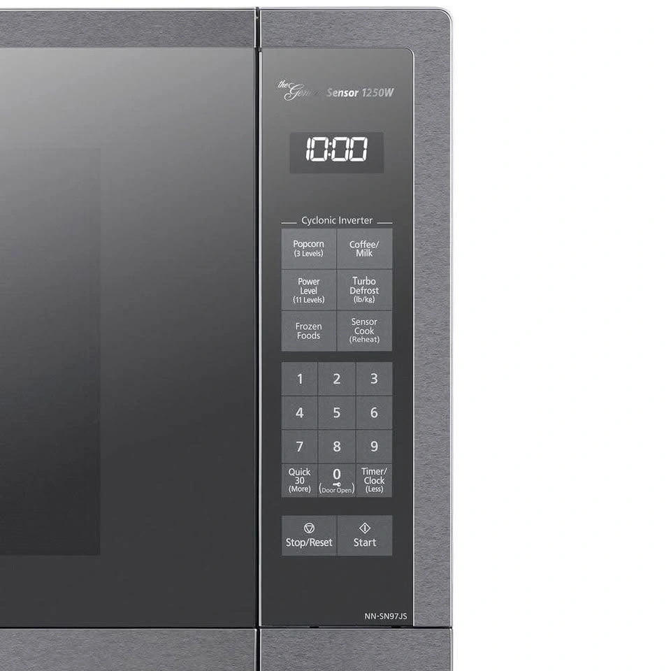 The Panasonic NN-SN97JS 2.2 cu.ft. Countertop Microwave Oven uses Cyclonic Wave Inverter Technology to circulates heat in precision, ultra-efficient 3D waves for easier, more versatile food preparation. This exceptional 1250-Watt, stainless steel microwave with 16.5 in. turntable, 11 power levels, 20 Auto Cook menus, Sensor Reheat, Quick 30-second timer, Easy Clean Interior and more.
