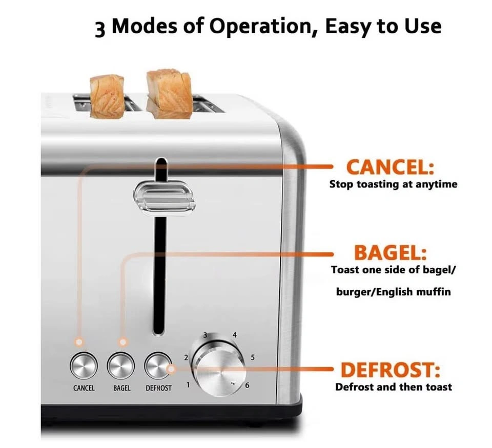 Modern 4-Slice Toaster – Bagel, Defrost, Stainless Steel