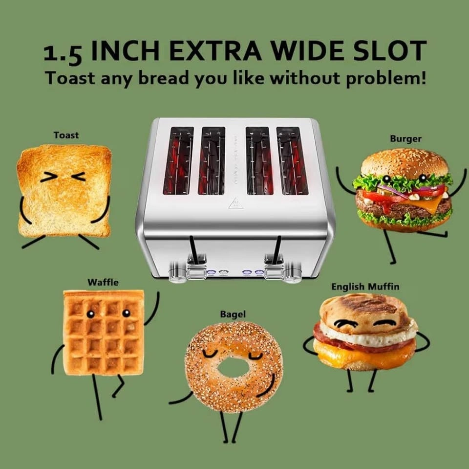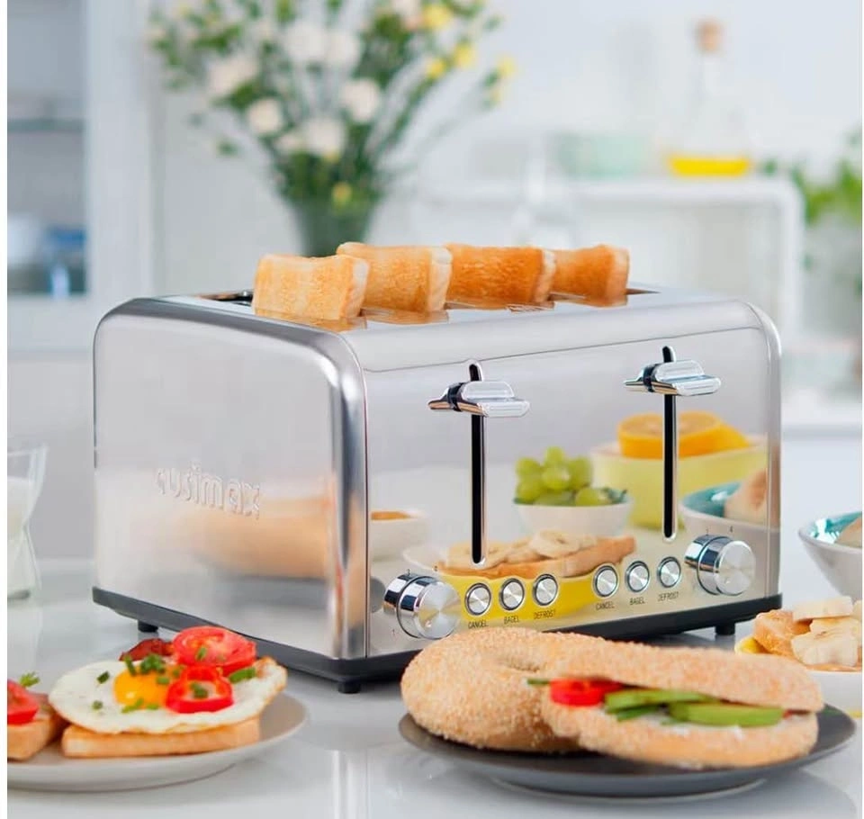 CUSIMAX 4-Slice Toaster — extra-wide slots, 6 shade settings, and bagel/defrost options.