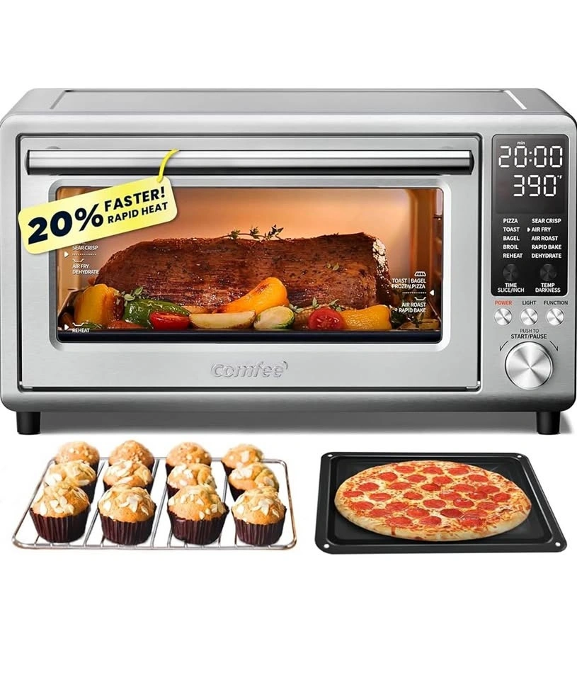 COMFEE Toaster Oven Air Fryer with FLASHWAVE™ Ultra-Rapid Heat Technology. Powerful, versatile, and perfect for everyday cooking. This countertop convection oven combines speed, capacity, and performance in one sleek stainless steel design.