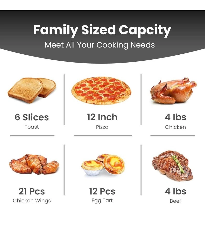 • Air Fry, Bake, Broil, Roast & Convection functions
