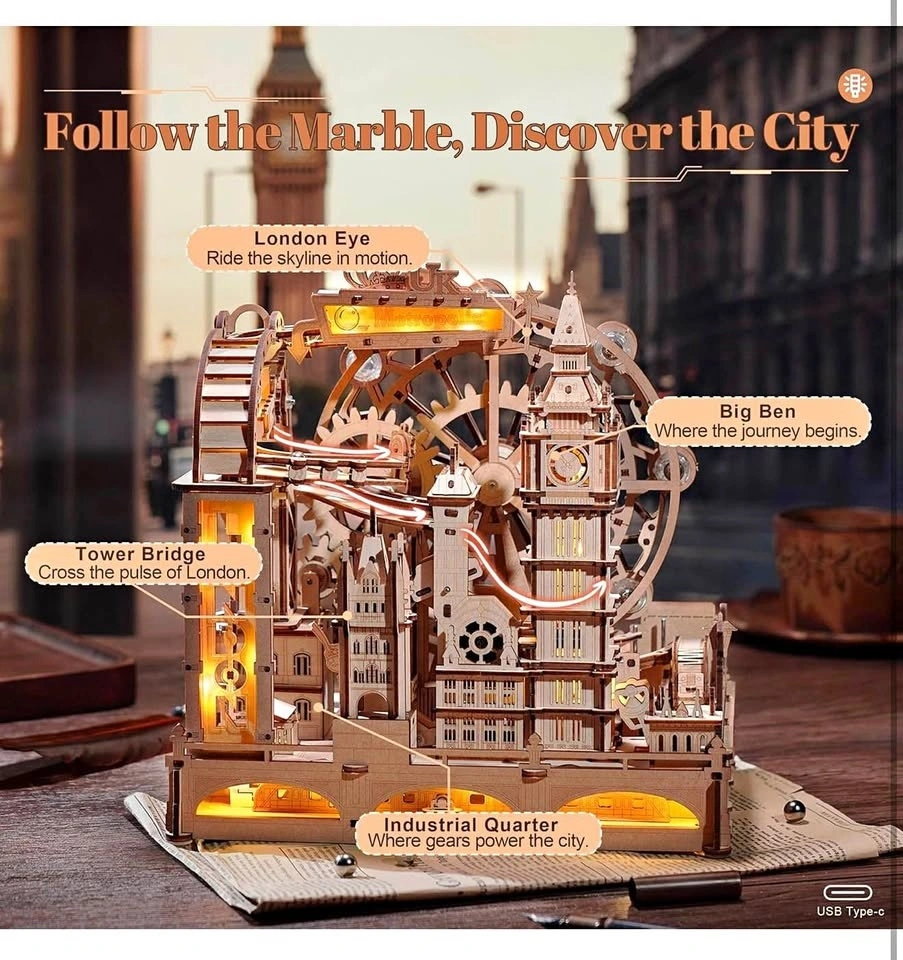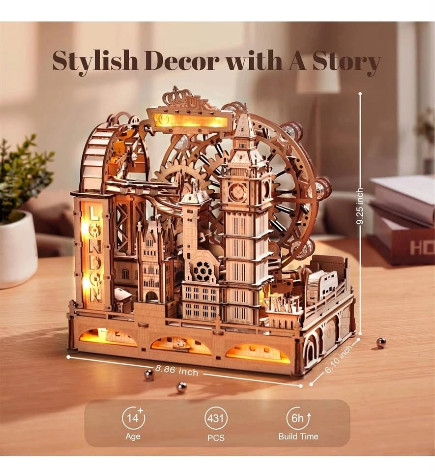 Brand new ROBOTIME Wooden Town Marble Run 3D mechanical puzzle β Night City edition! Perfect for adults, teens, or anyone who loves hands-on builds and engineering challenges.