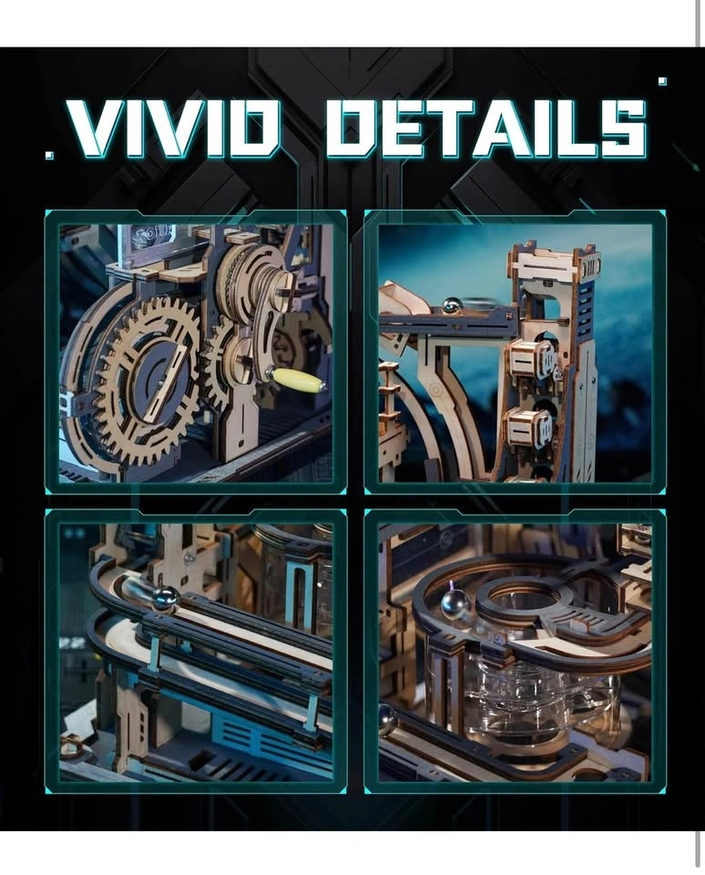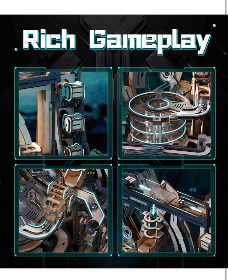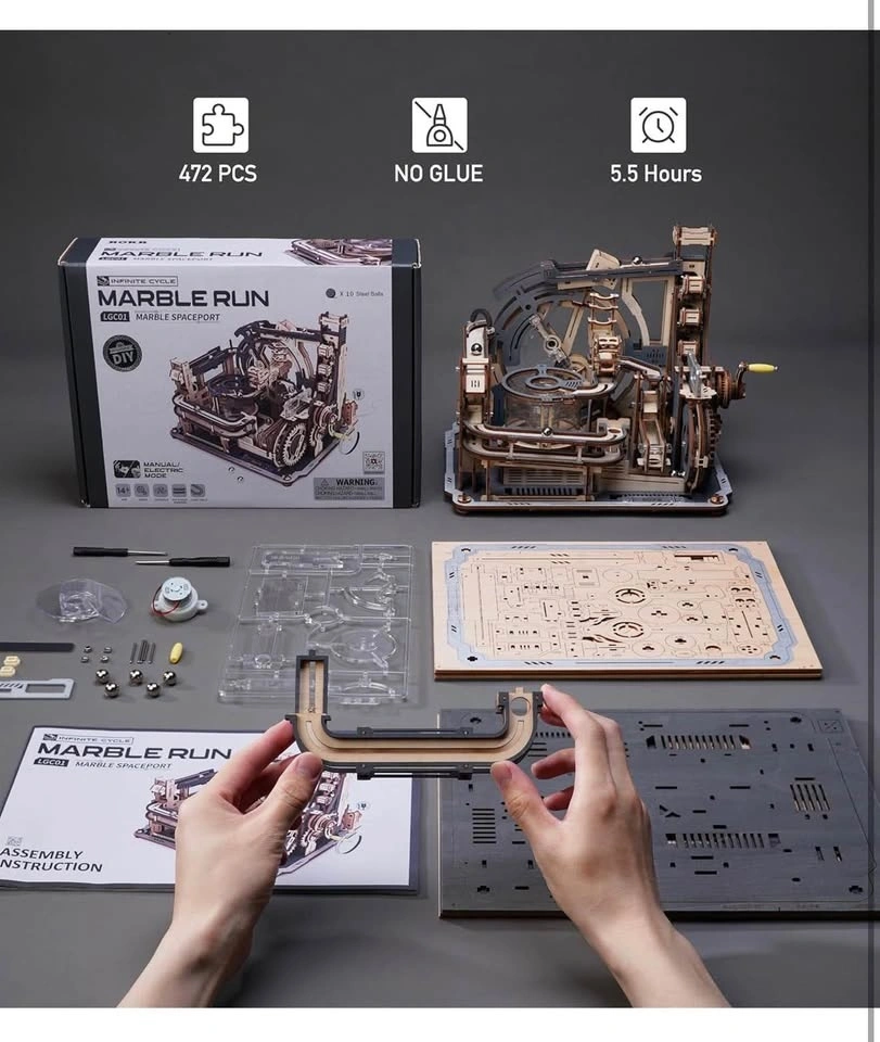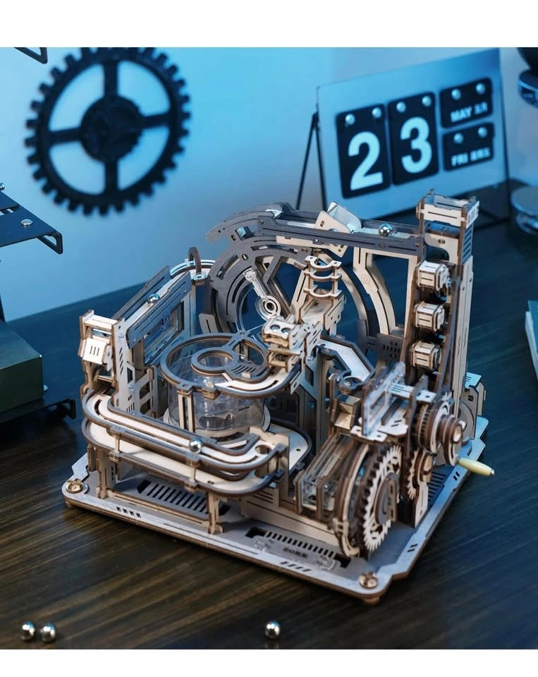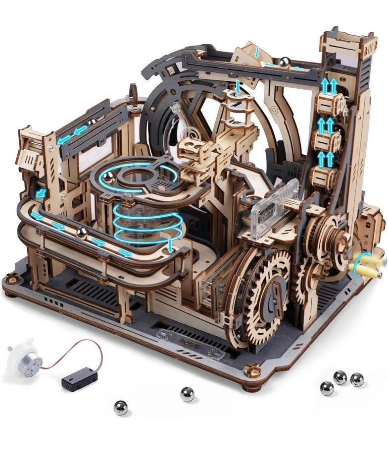 ROBOTIME Motorised Wooden Puzzles for Adults - 3D Puzzles for Adults LGC01 Marble Spaceport - Wooden Marble Run Model to Build - Space/STEM/Engineering Gift
